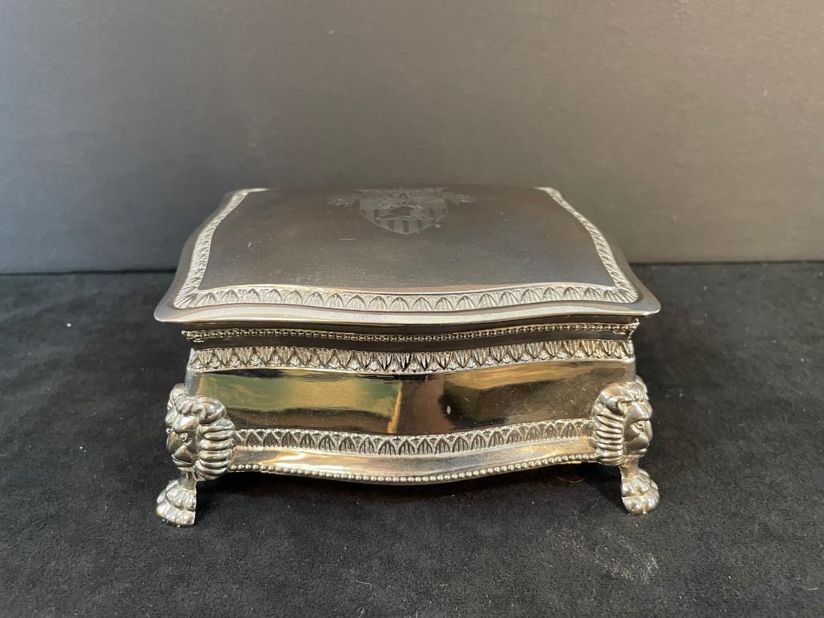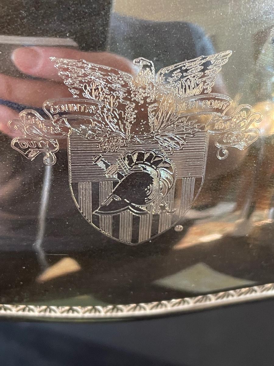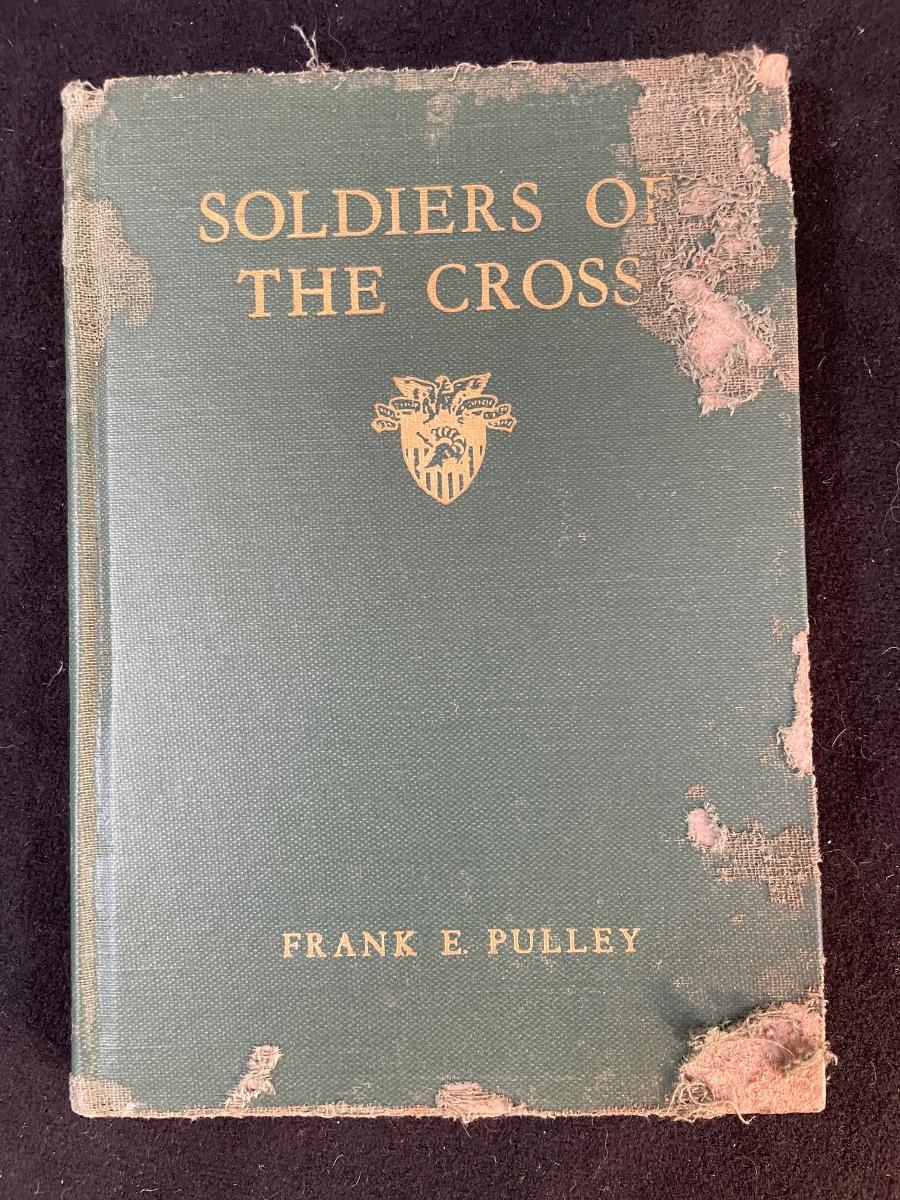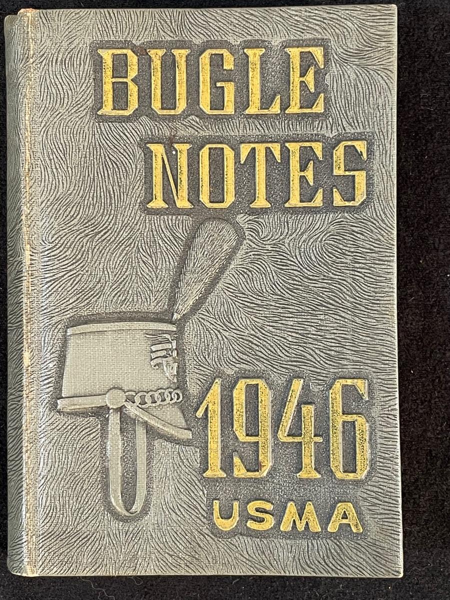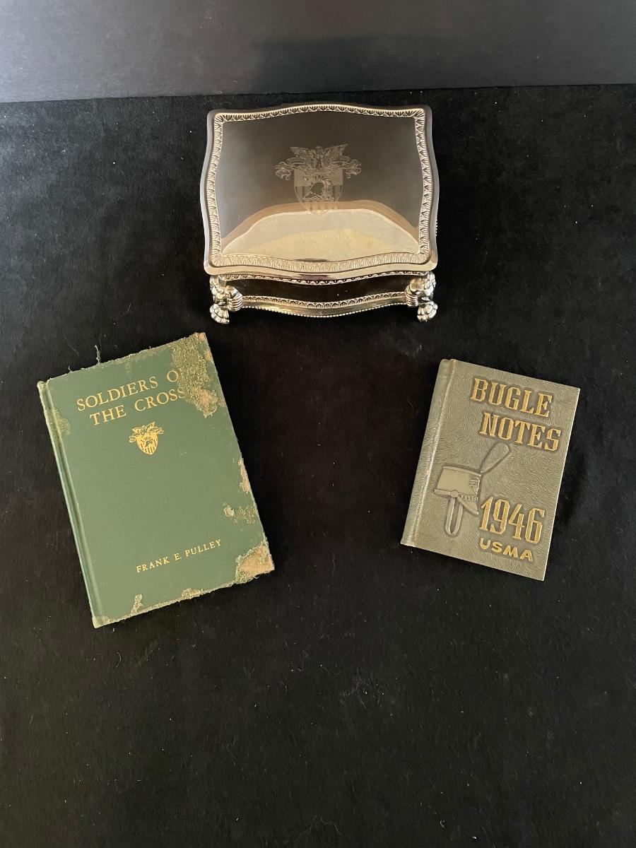 two military-themed books " Bugle Notes" 1946 and "Soldiers of the Cross" 1950 and a silver-plate, velvet-lined box commemorating the US Military Academies