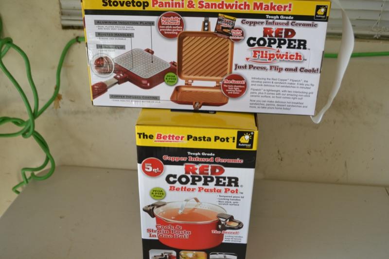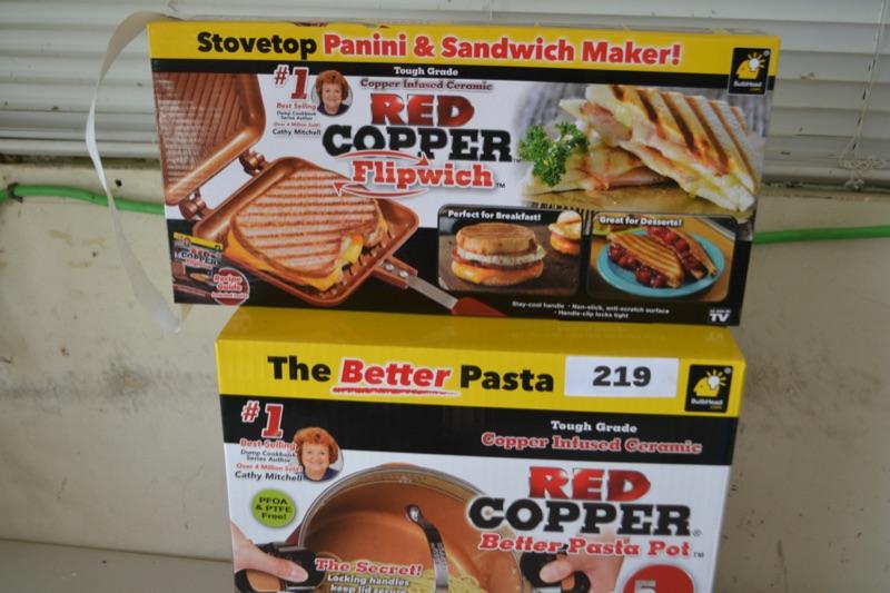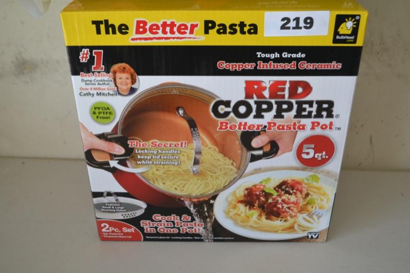LOT 219  RED COPPER PASTA POT AND FLIPWICH
