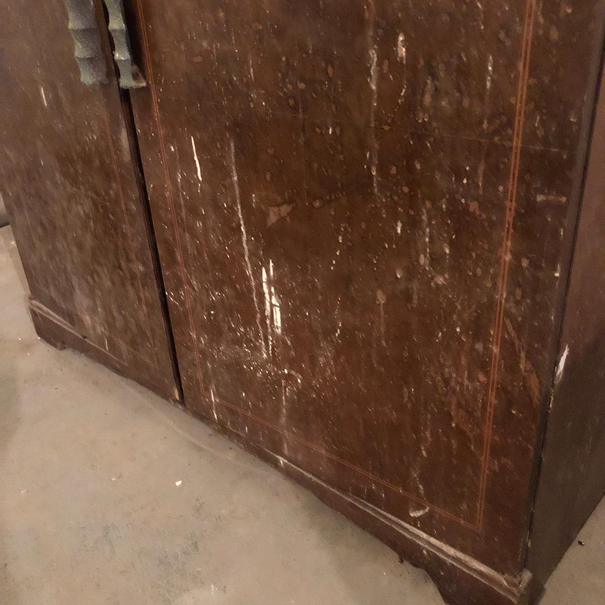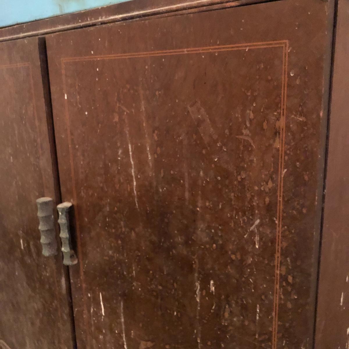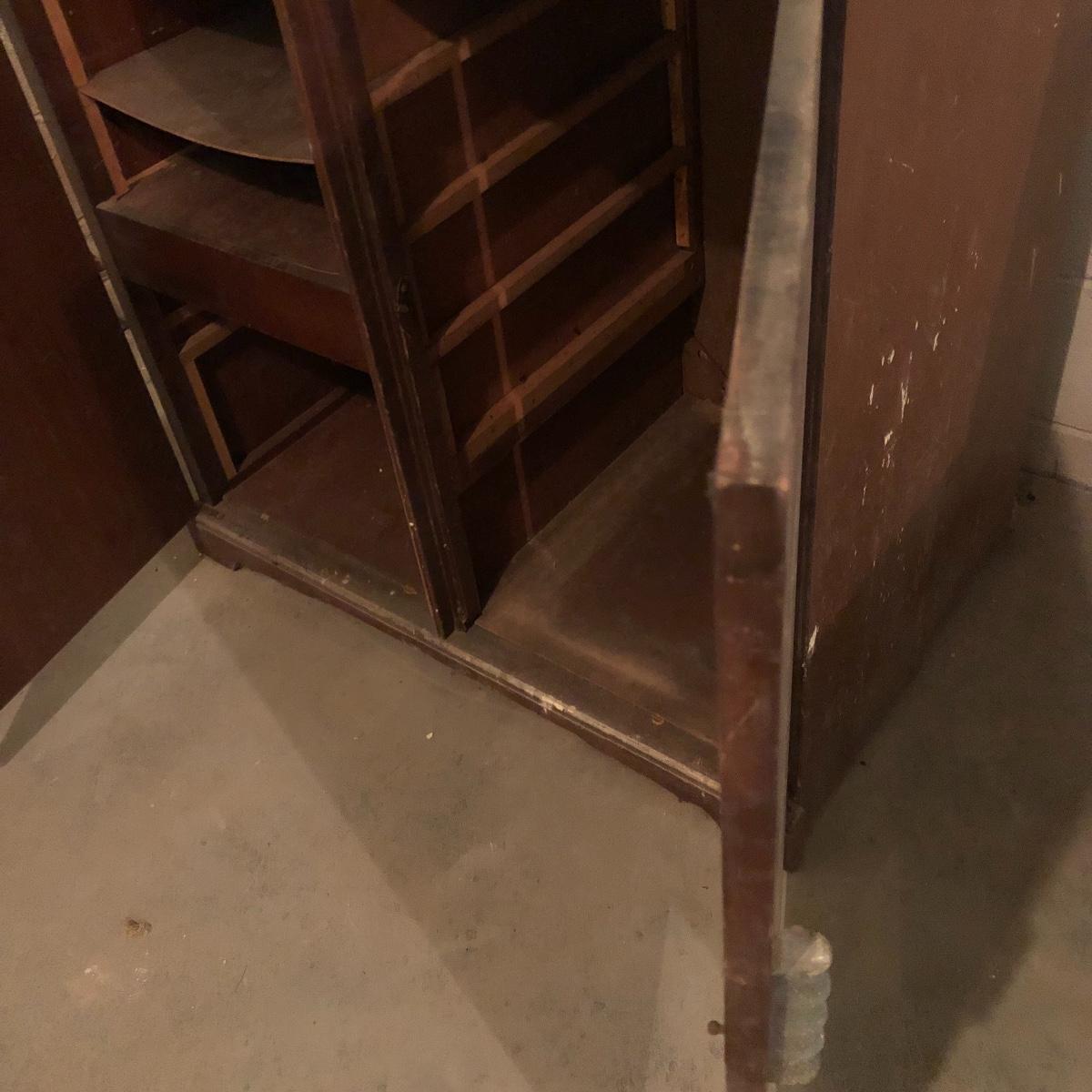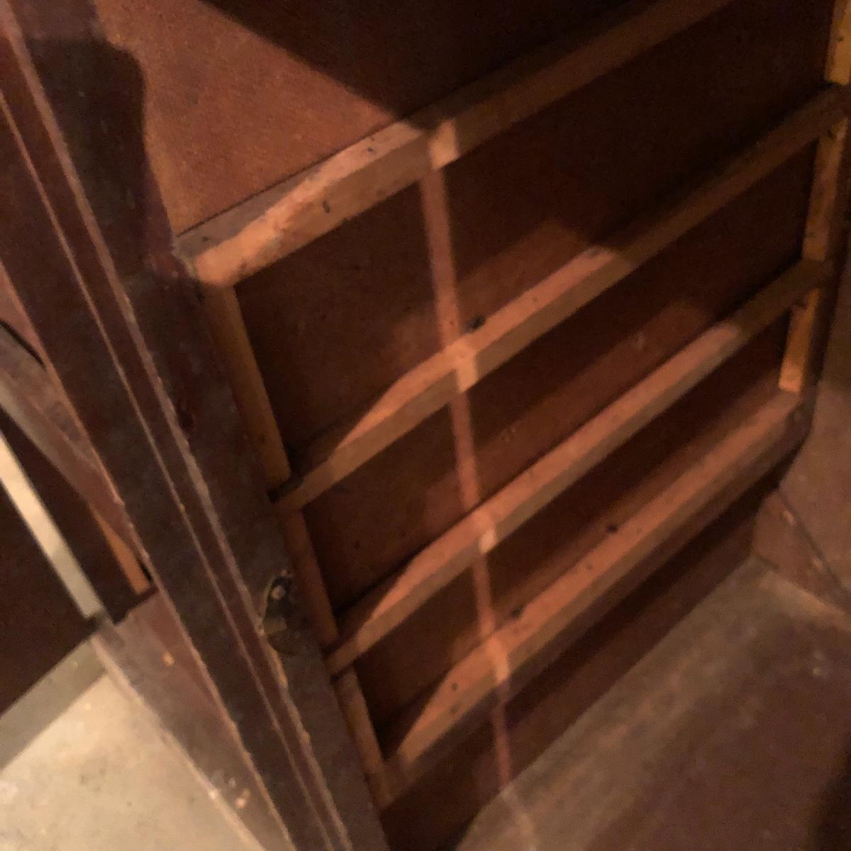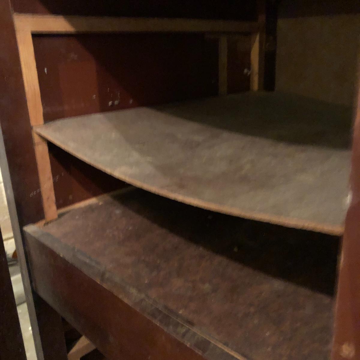 Get organized in the garage or your shop with this cabinet. It has metal handles and a shelf on the left side with shelf supports on the right for you to add the shelves you need. It is an older cabinet and therefore looks to be solid wood. Unit has box that has switch for a plug. It does have some paint and wear on it yet at one time, was a handsome piece of furniture. It measures approximately 35.5” x 21.5” x 35”. The lapidary saw is not included with this lot. (If interested, the saw is in lot 85.)