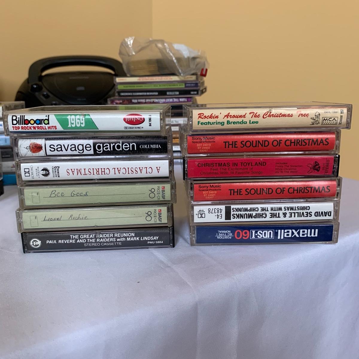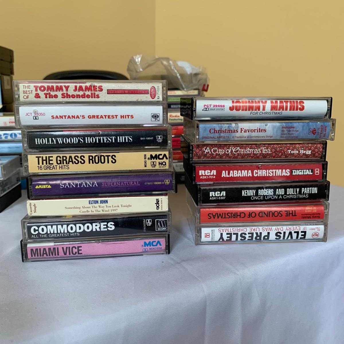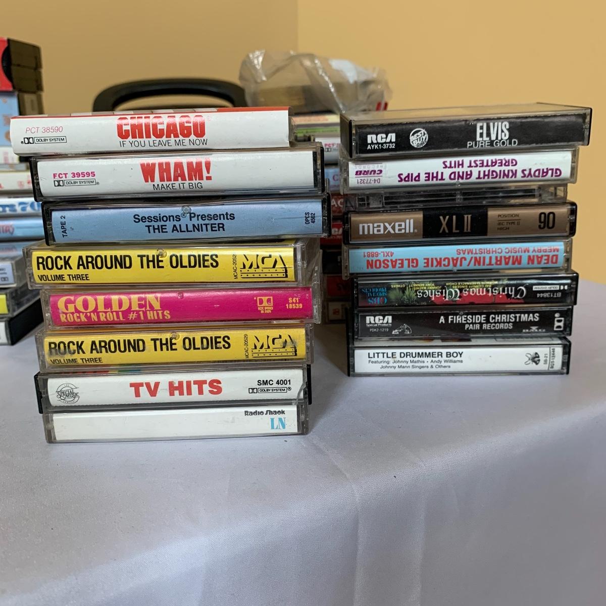 This lot will supply endless hours of entertainment! Included is a Symphonic DVD Player with a remote control and a Memorex Portable CD Boombox. Both power on when plugged in. The Boombox has the option of being battery powered as well as plugging in. There is also a Netgear Advanced Cable Modem Gateway that comes in its original box, with a USB cable, AC-DC adapter, and Ethernet cable, as well as a resource CD. The modem powered on when plugged in. Also included is a wide variety of CDs, DVDs, VHS tapes, and cassette tapes. All appear to be in good condition with only minor wear. There is an Elton John Tribute DVD with an original signature that appears to be from Joel Mason. Local pickup only.