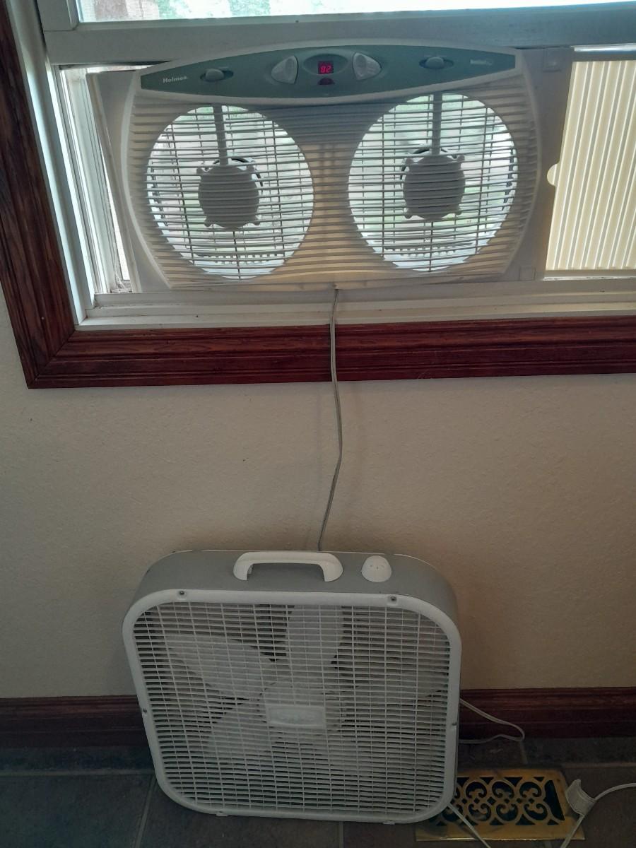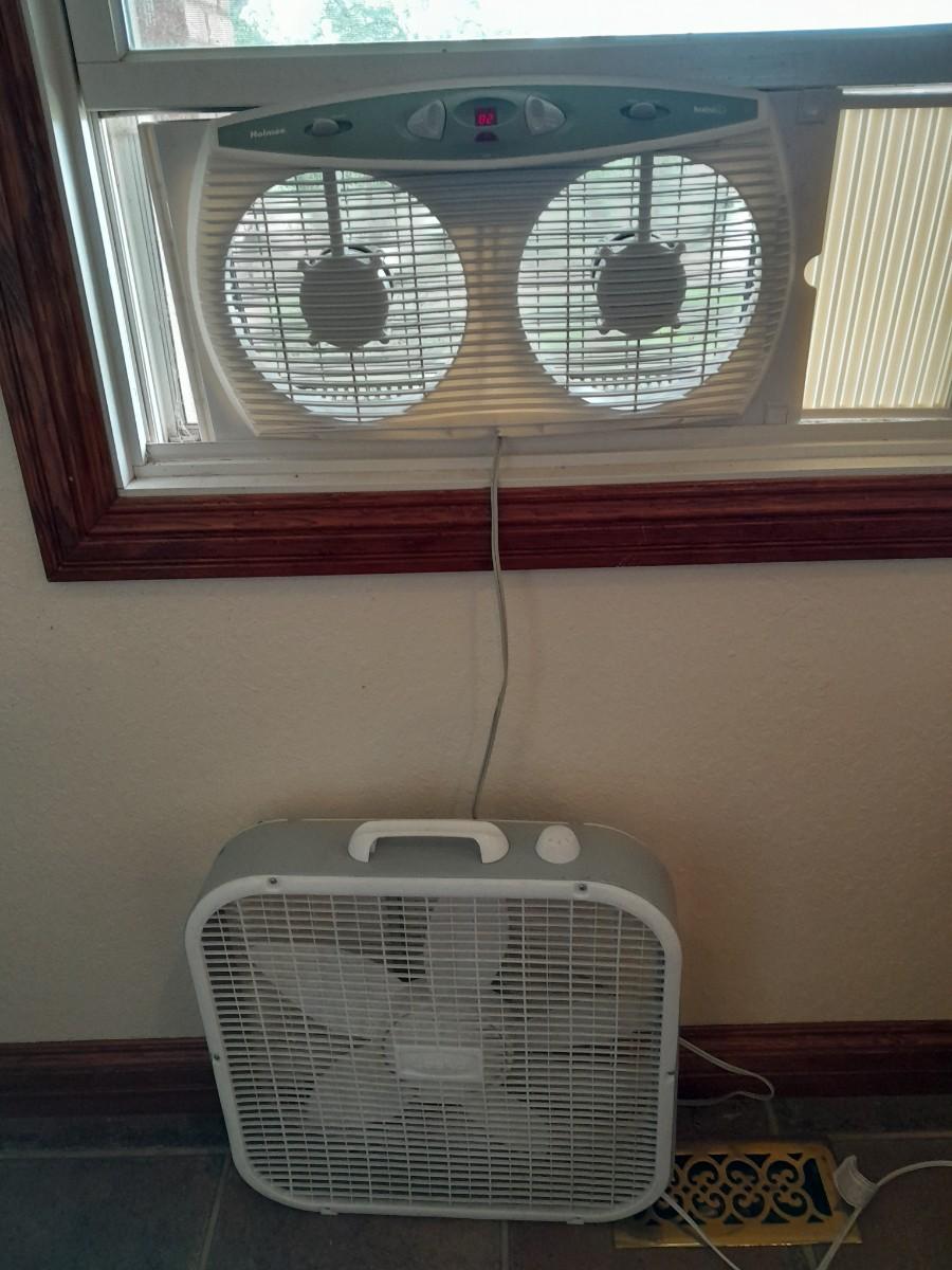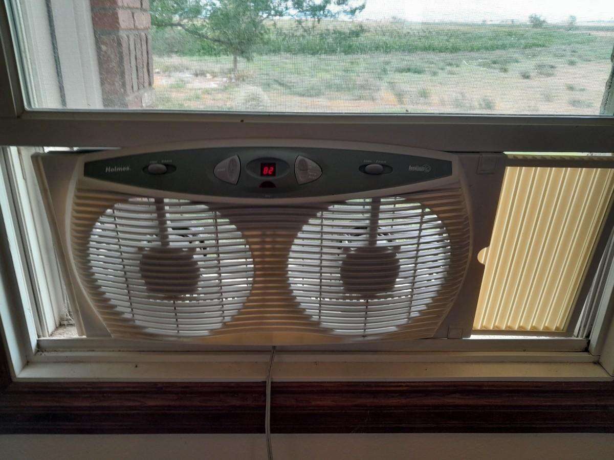 ONE HOLMES WINDOW FAN WITH AIR OR EXHAUST, AND A FREE STANDING LASKO FAN