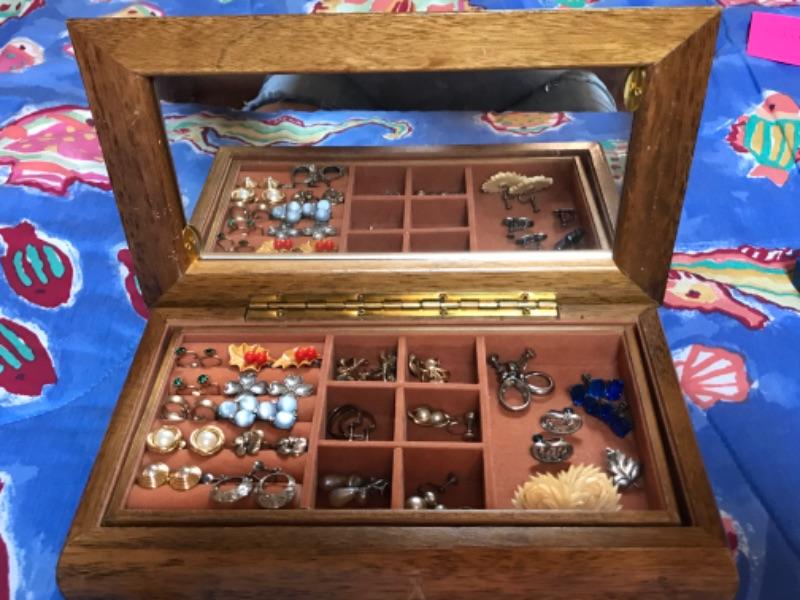 Lot #219 Wooden Jewelry Box With Screw Back Earrings