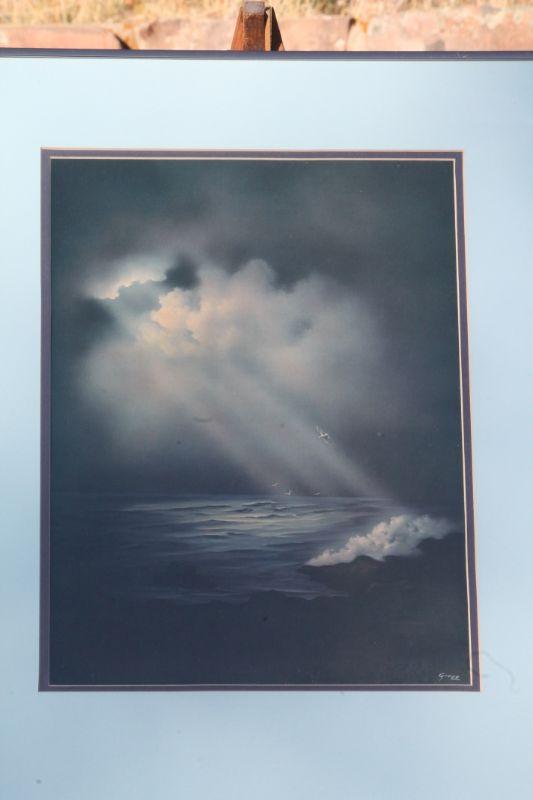 Lot 2-195: Vintage Framed Sunlight Peeking Through Clouds Print {23" x 18"}