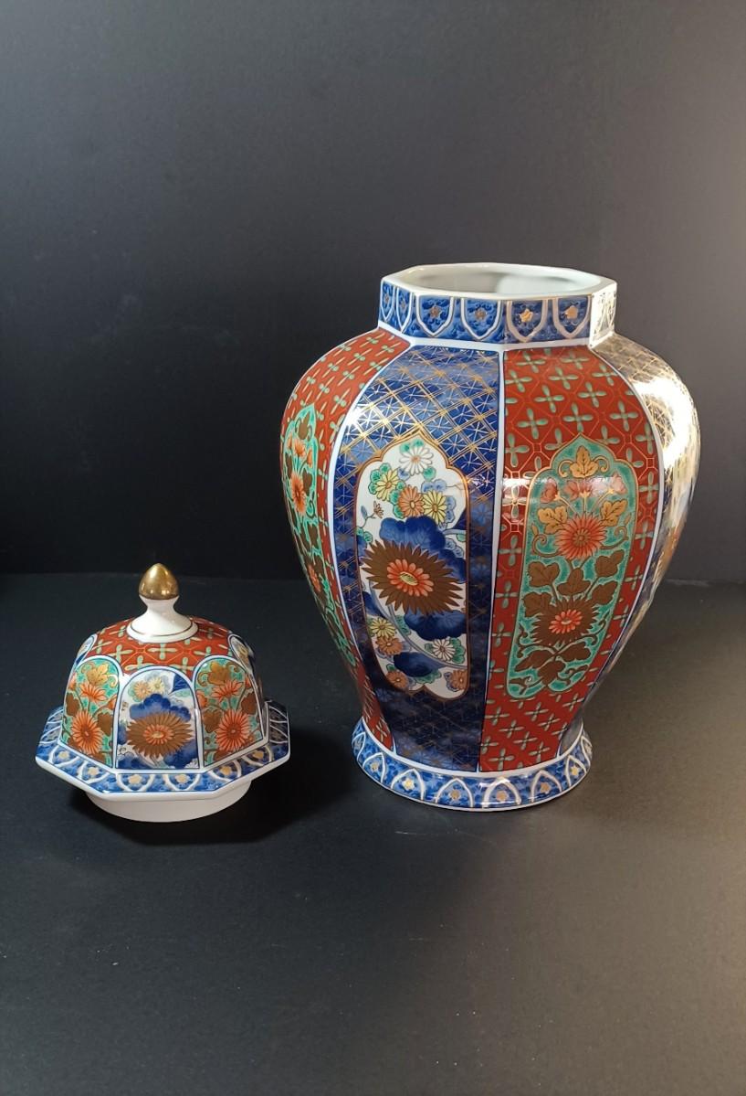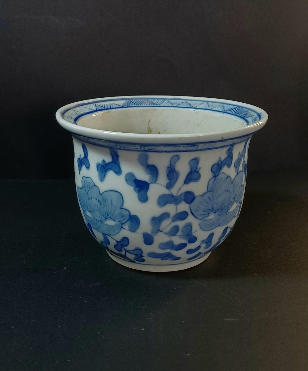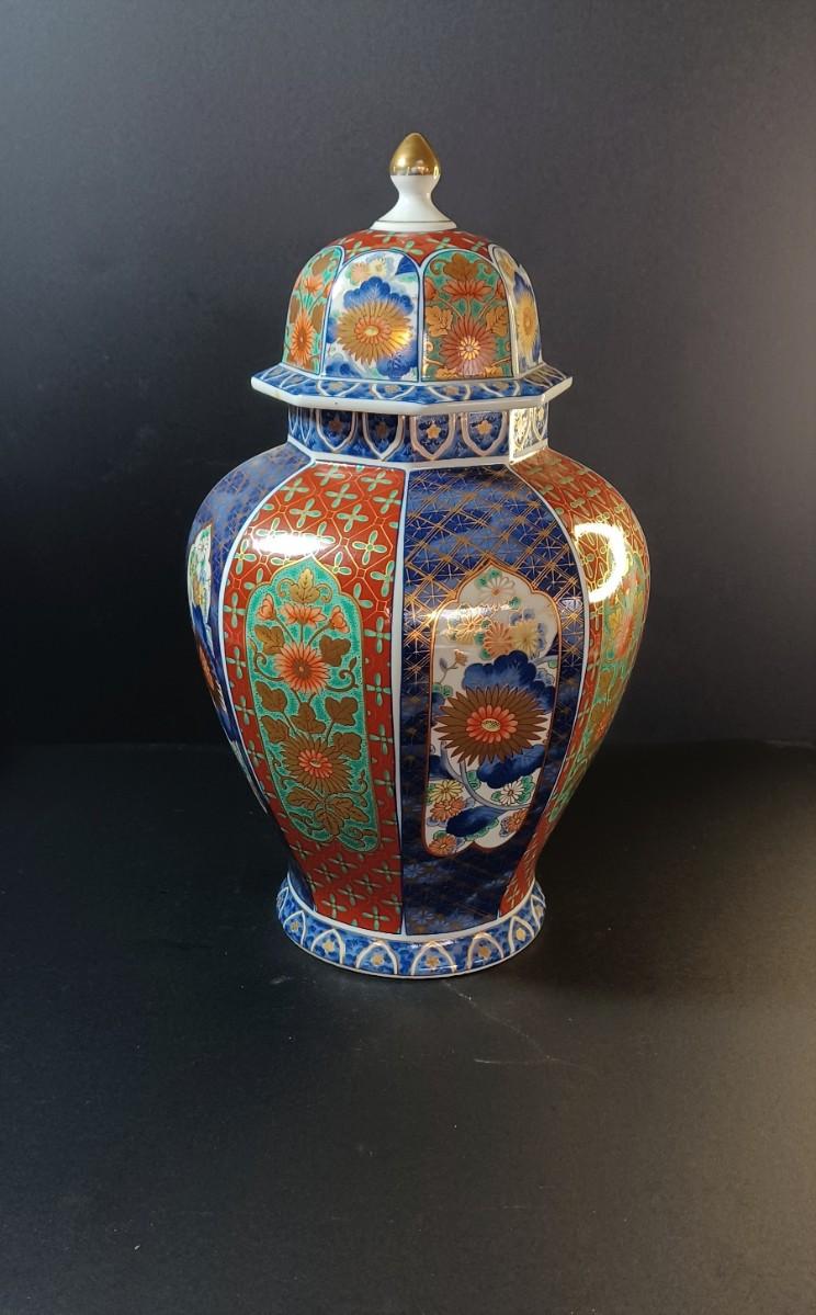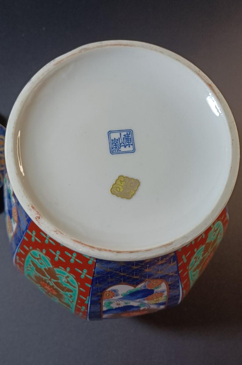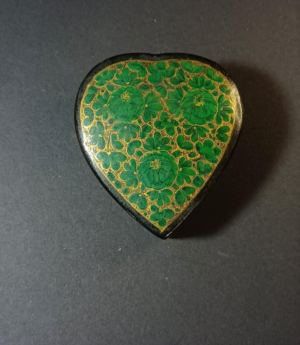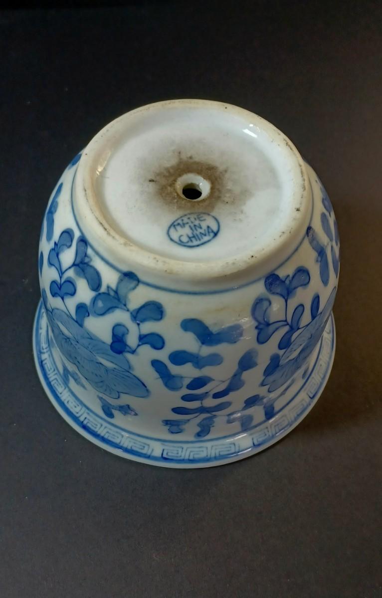 Japanese urn with lid. Small flower pot with blue flowers and vines. Jewelry box with roses on the lid. smaller jewelry box with green flowers on the lid. Tiny handmade doll.
