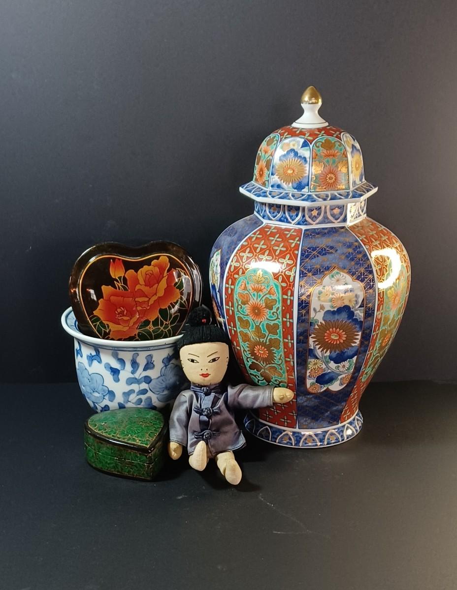 Lot 219: Japanese Pottery, Jewelry Boxes, and Doll