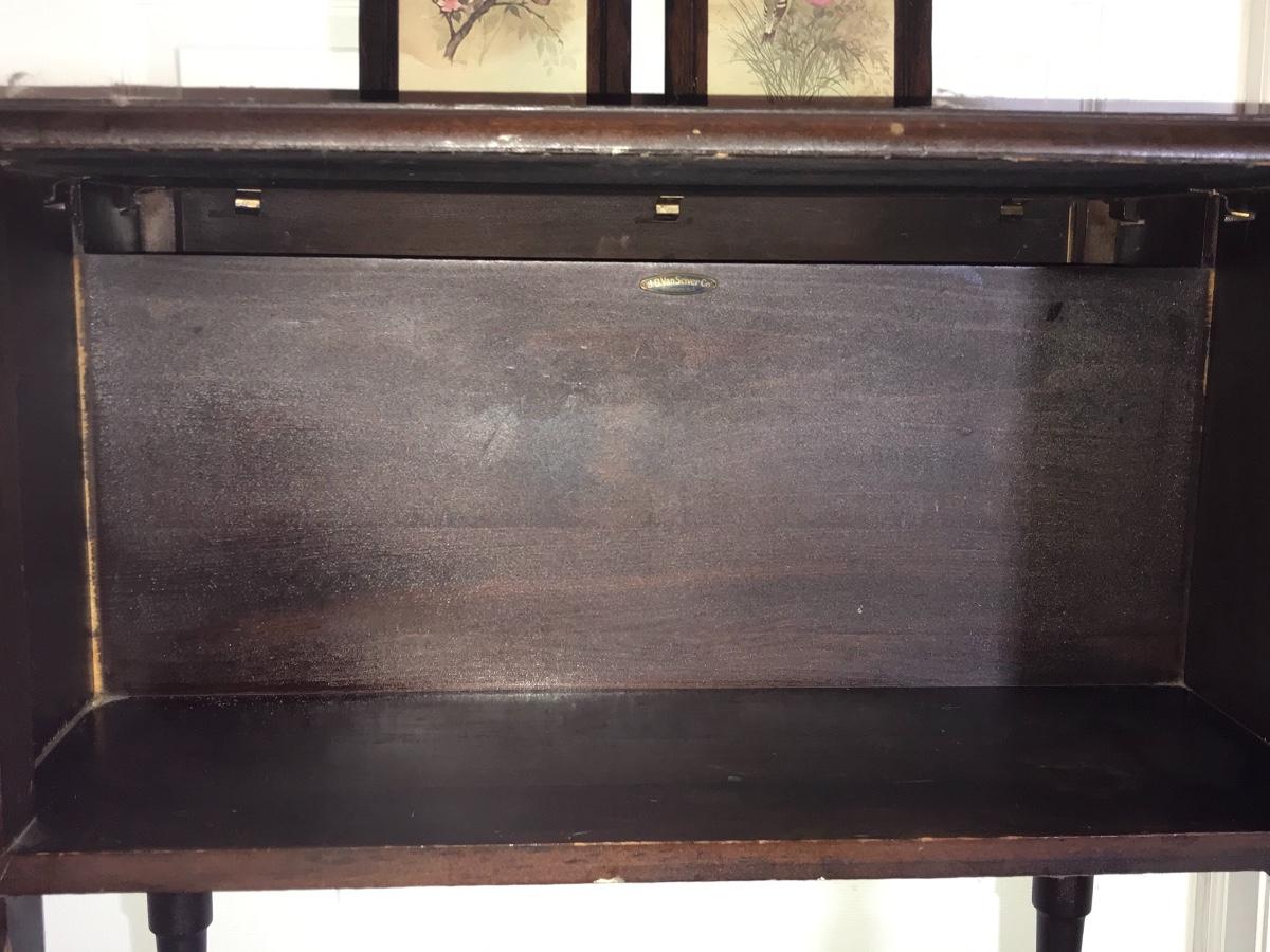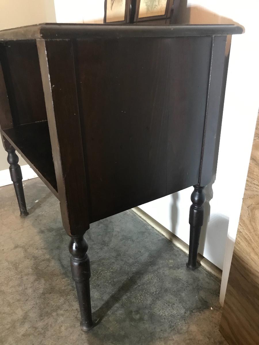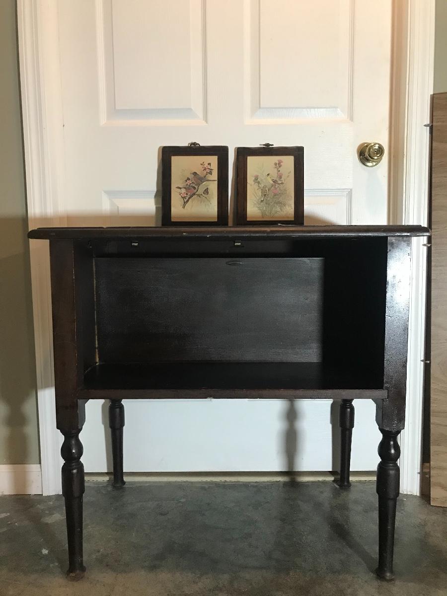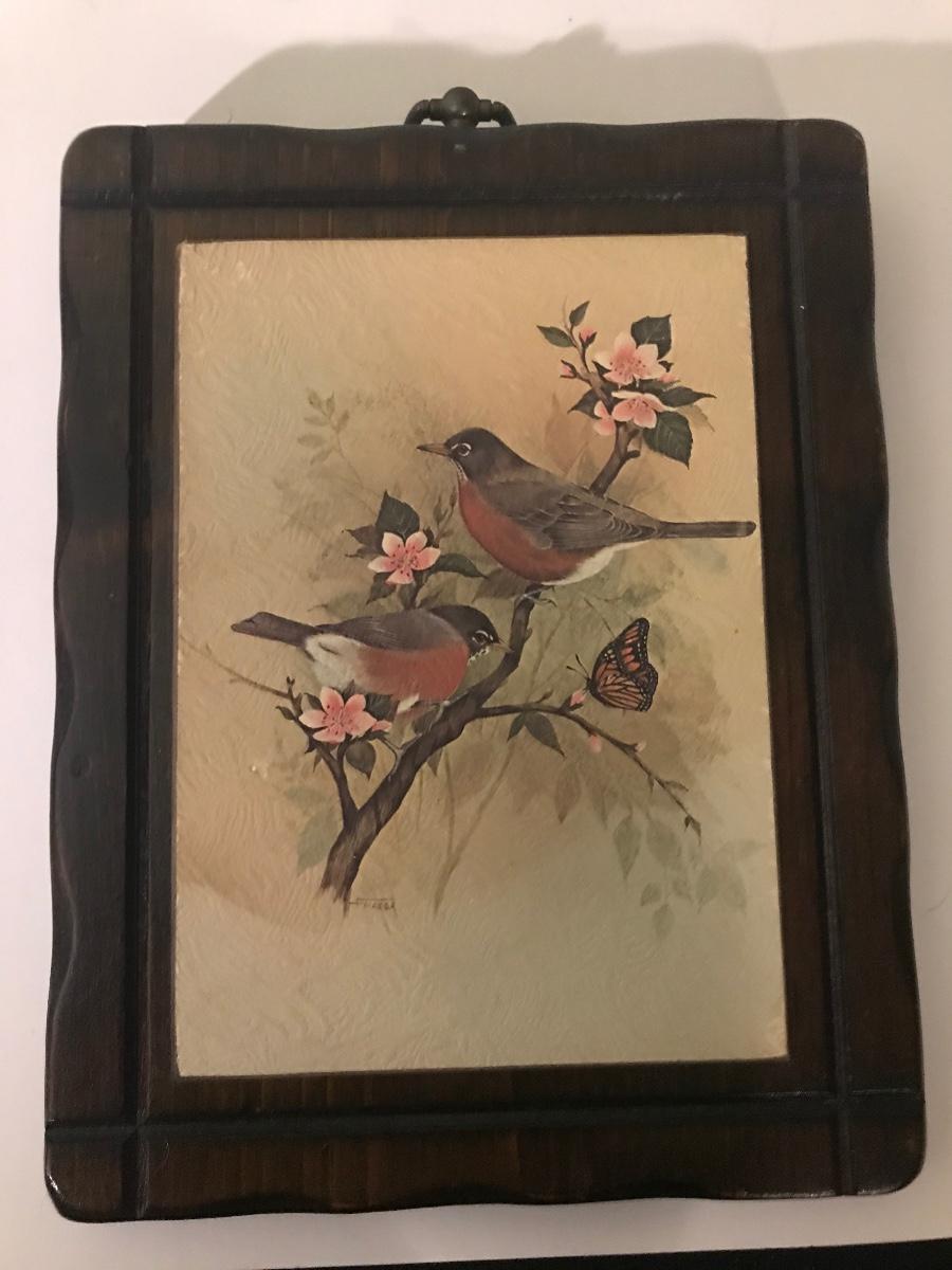 Wooden table has a shelf, and the original metal tag. 29.5x18x28.5 high. Also, two vintage bird plaques. Move from basement. Please see all pictures for content of the lot, condition of the lot, and measurements if taken. Pictures are the best representation of the items listed and items are untested unless indicated in description. Thank you for looking and have fun bidding!