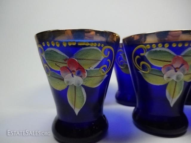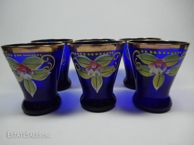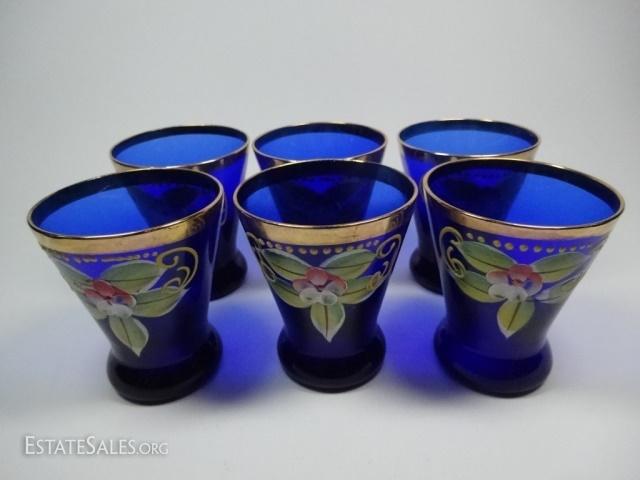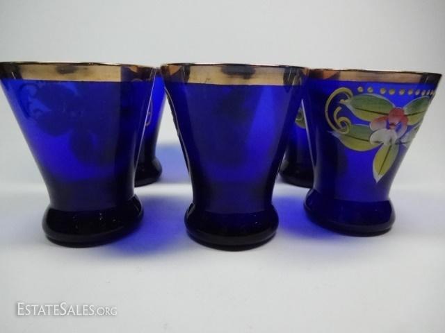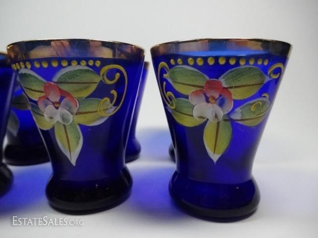 LOT 21D: 6 PC HANDPAINTED COBALT AND GILT GLASSES