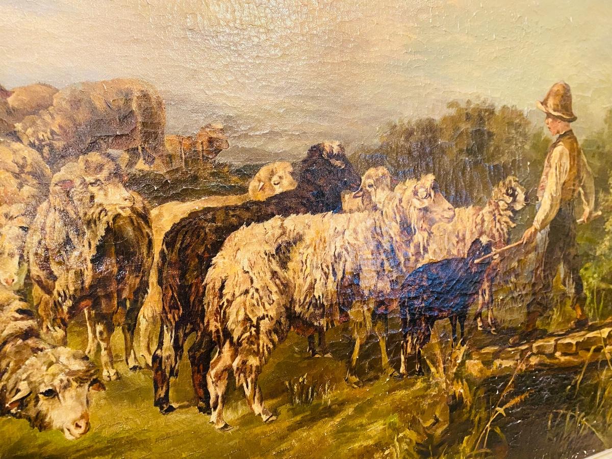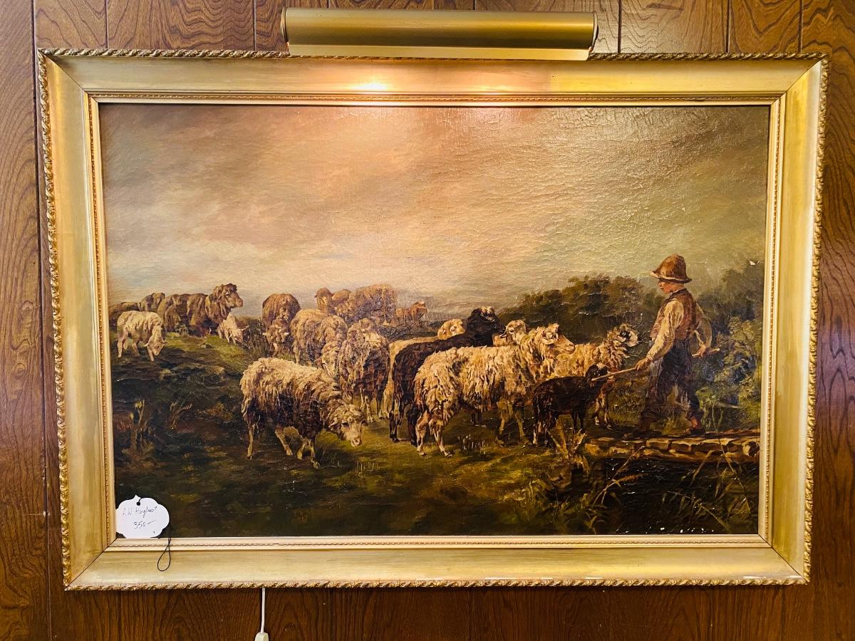 Lot 22: Vintage Original Oil on Canvas Sheep Herder Art
