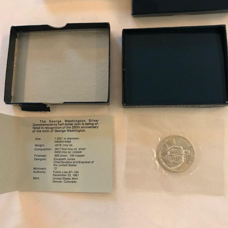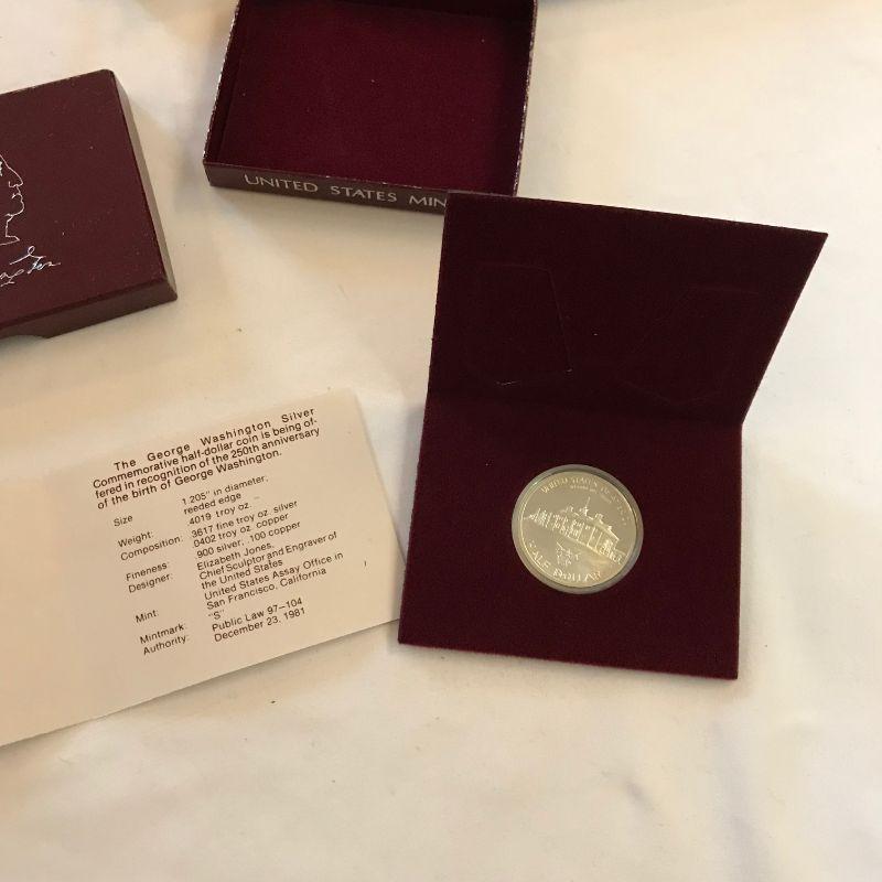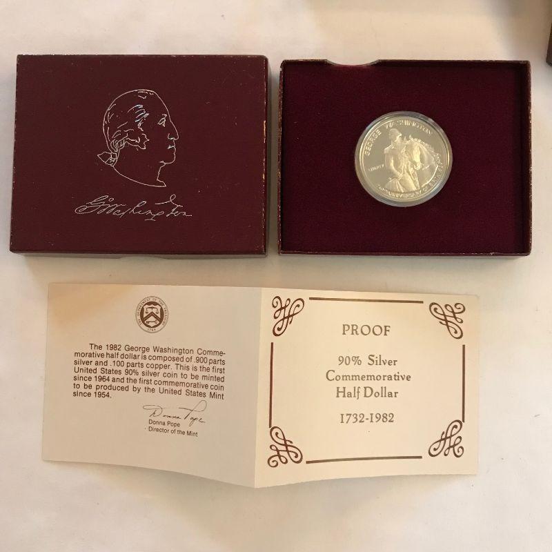 1982 George Washington Half Dollars 90% silver. Eighteen Proof and Twelve Mint. One Proof is missing it’s descriptive paper.