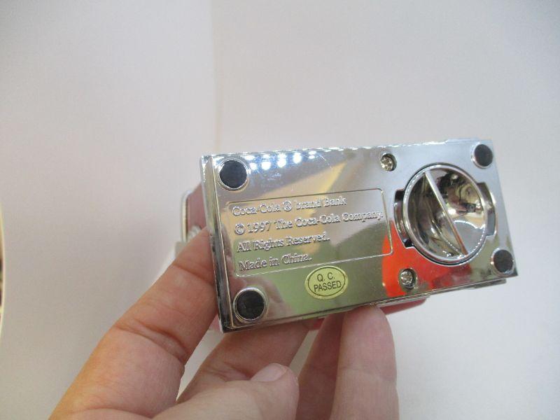 This bank is in great condition and measures about 6" tall. The top half is plastic, but the bottom half is metal.