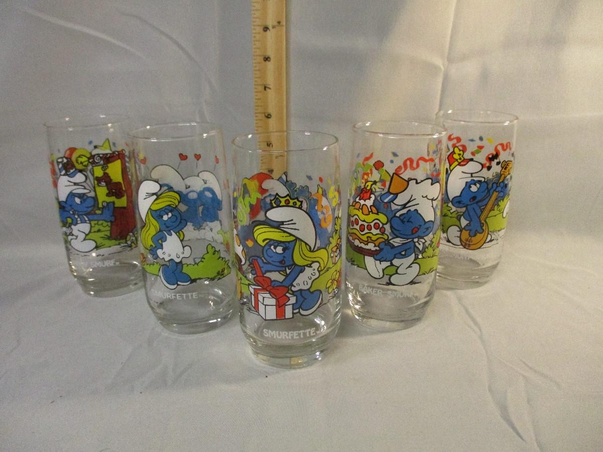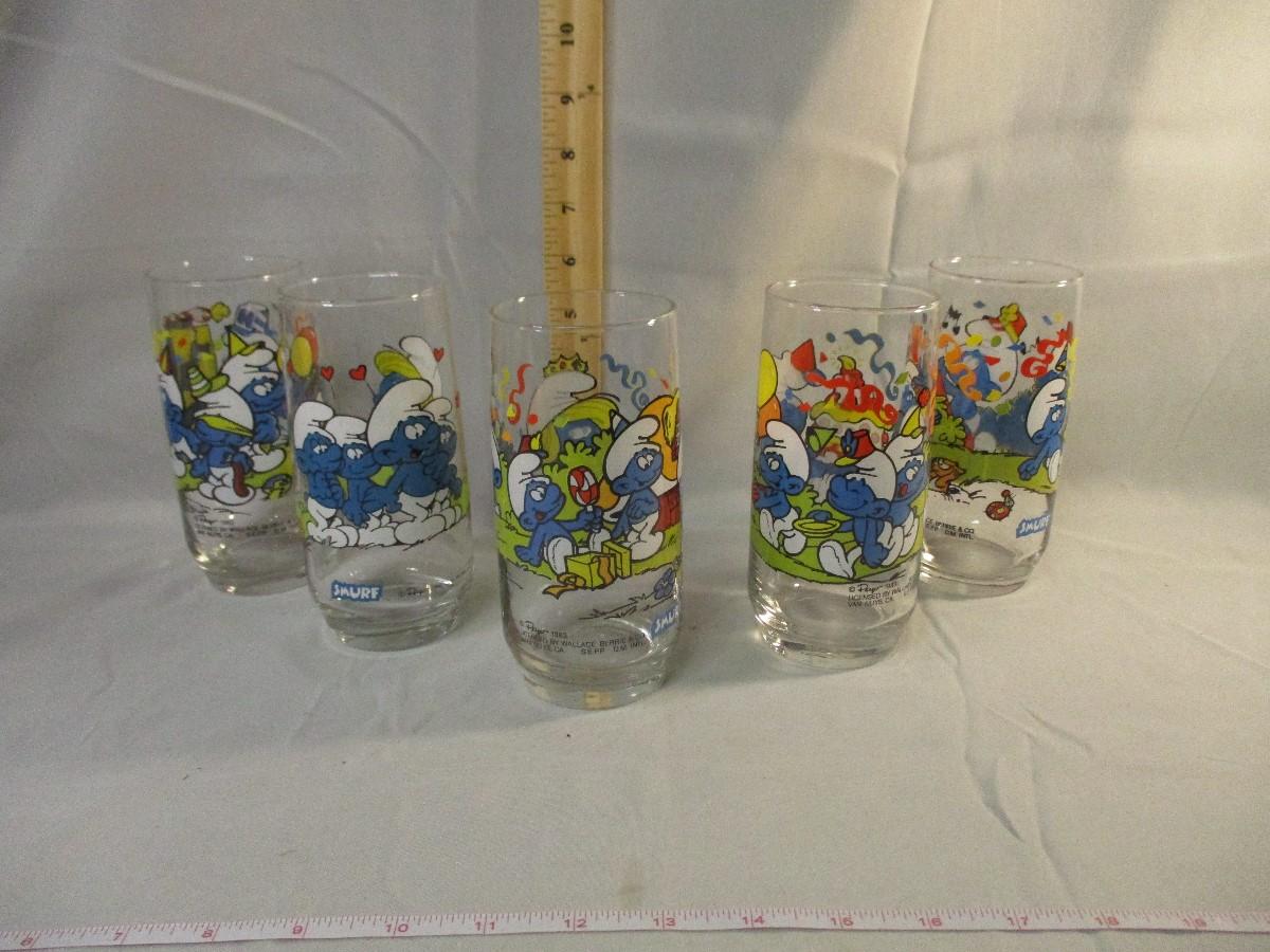Lot 22 - (5) 1983 Smurf Collector Glasses
