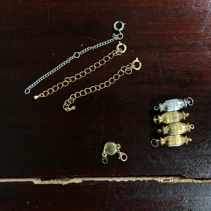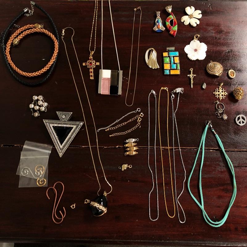 This lot includes several things needed to make necklaces and earrings that fit you and your personality! It comes with five bare chains, about three pairs of earring wires, and a myriad of different pendants. It also comes with magnet and hooks to attach necklace chains. Create any combination of pieces with this lot! Shipping available.