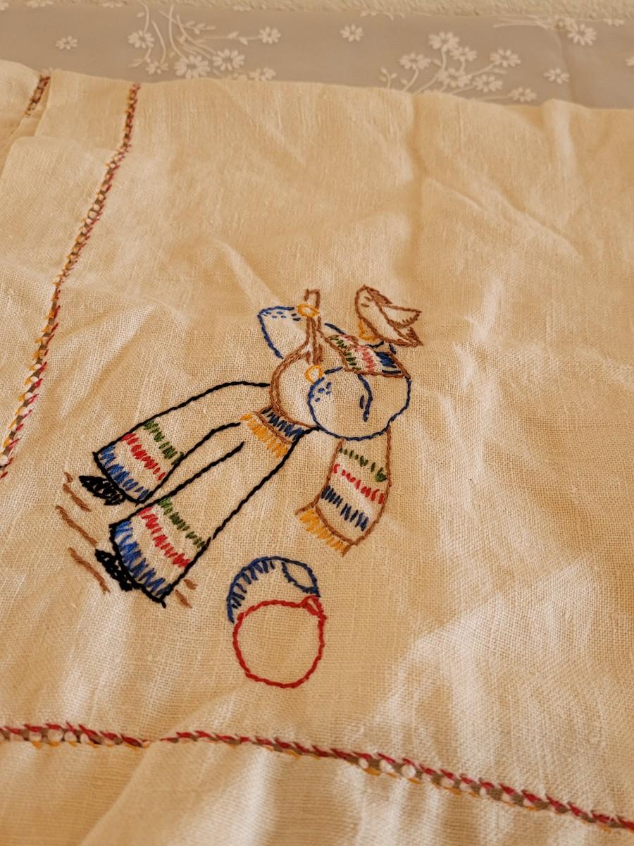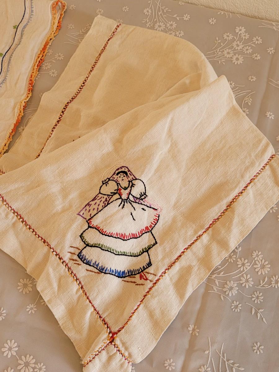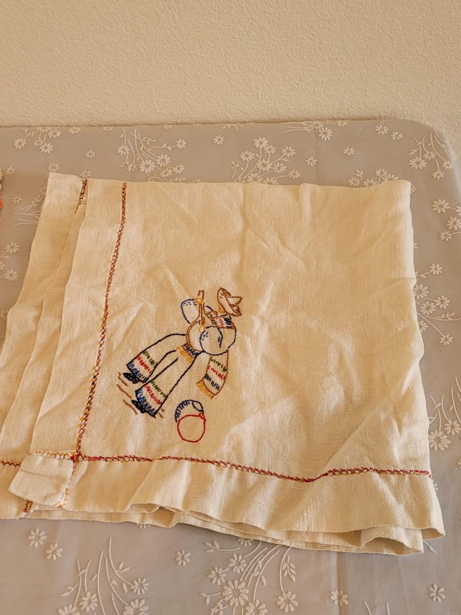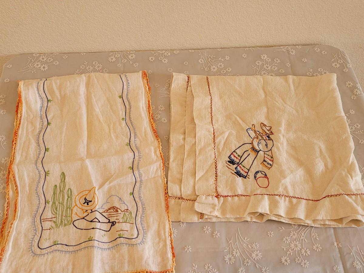 Lot 22: Vintage Handmade Small Square Tablecloth & Table Runner