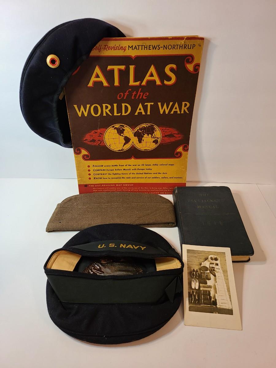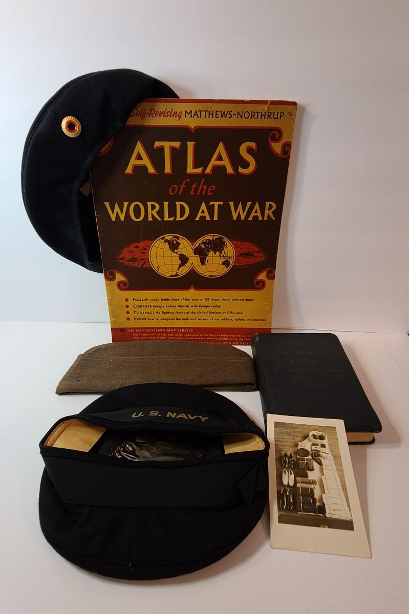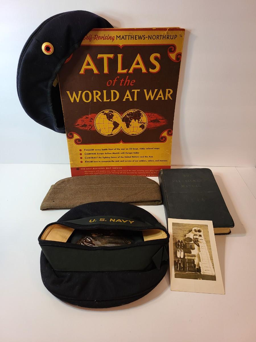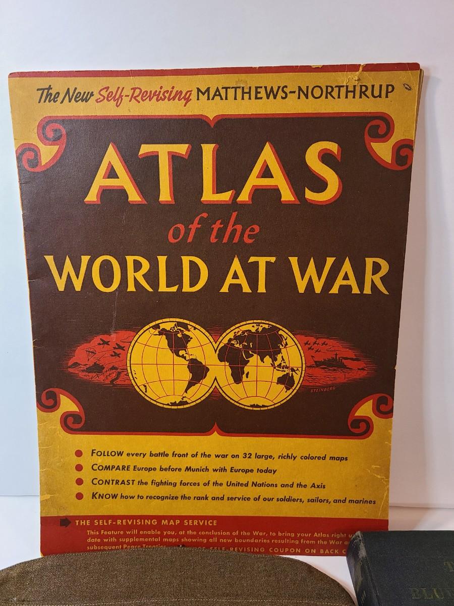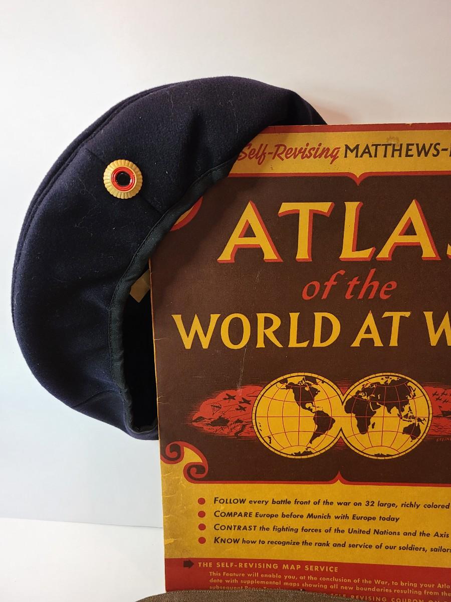 Lot 22: Vintage Atlas of the World at War, Navy Hat and More