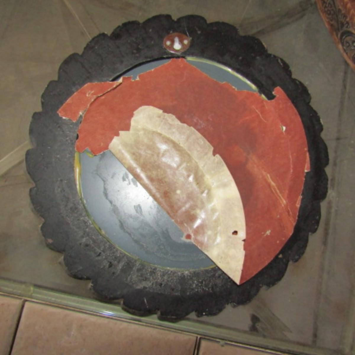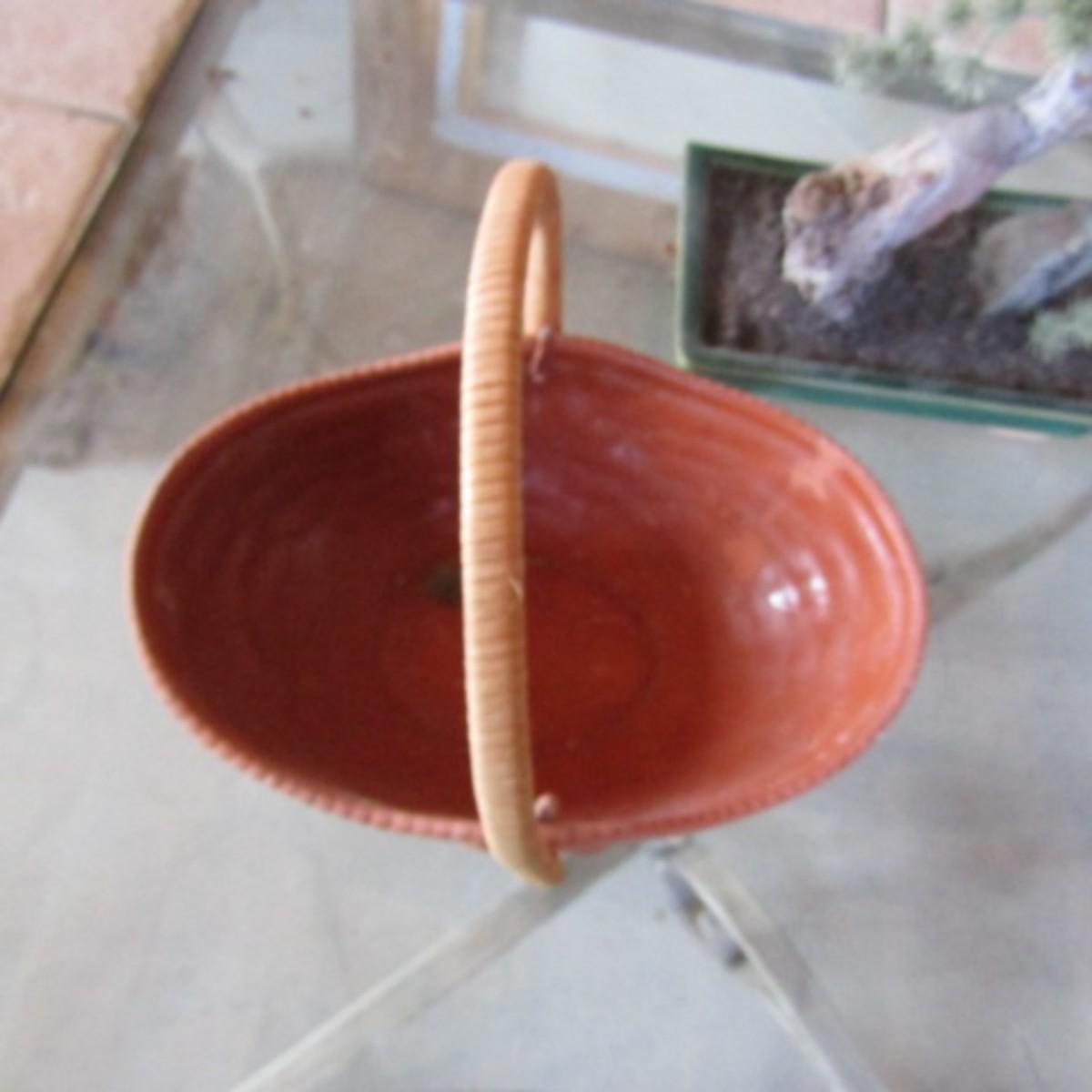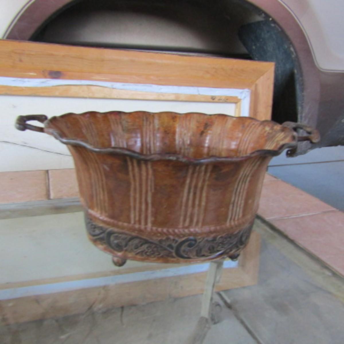 SMALL 12" ROUND WALL MIRROR, BONSAI TREE, METAL AND TERRA COTTA BASKETS