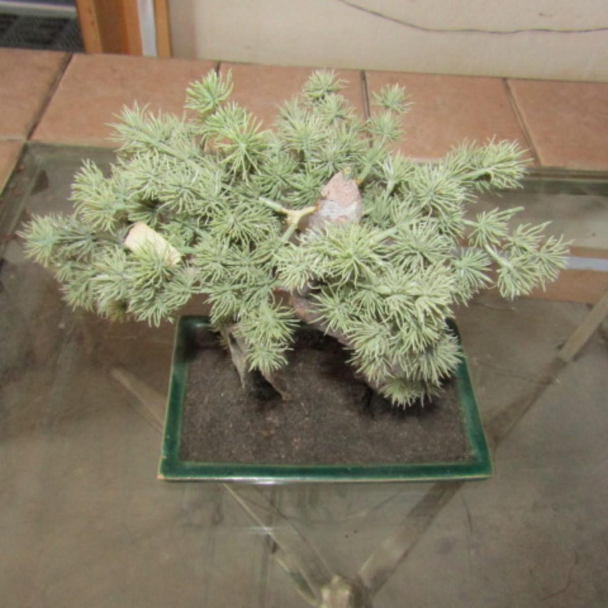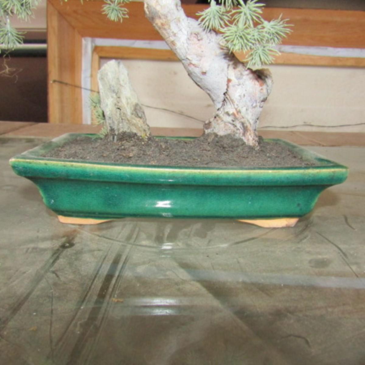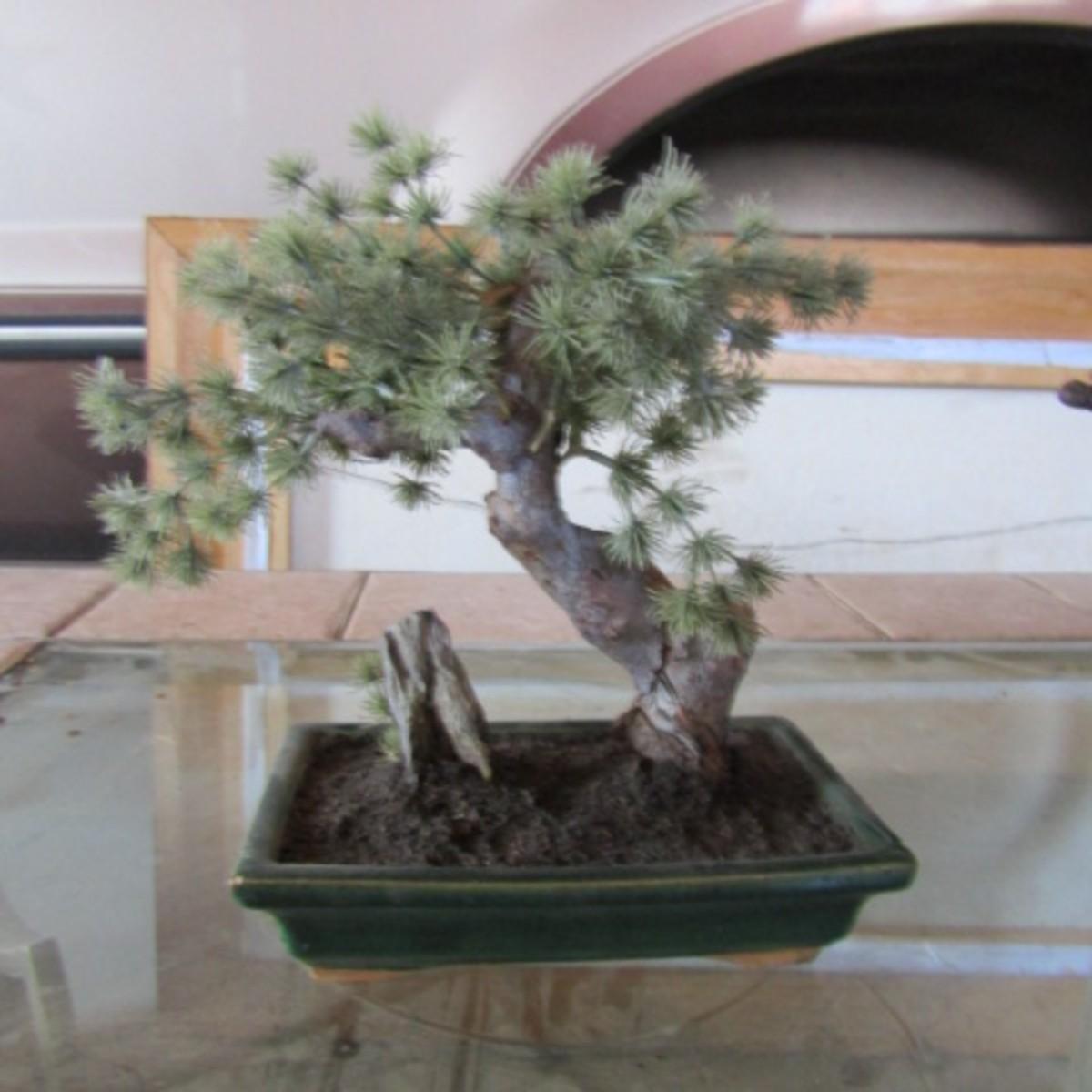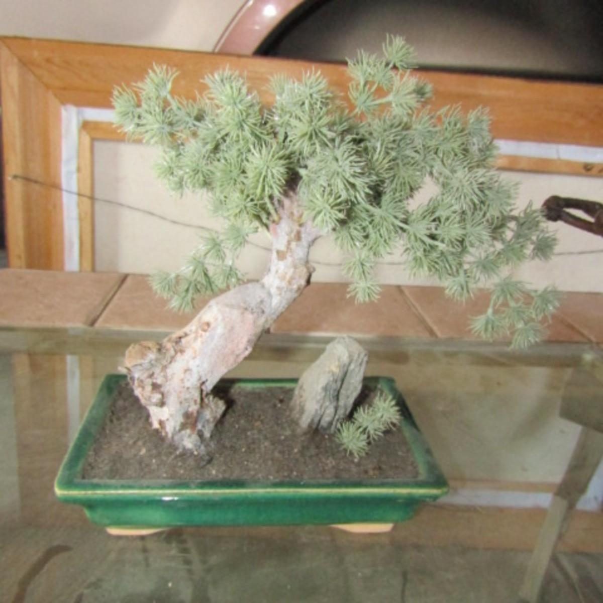 LOT 22  SMALL ROUND WALL MIRROR, BONSAI TREE, METAL AND TERRA COTTA BASKETS (W)
