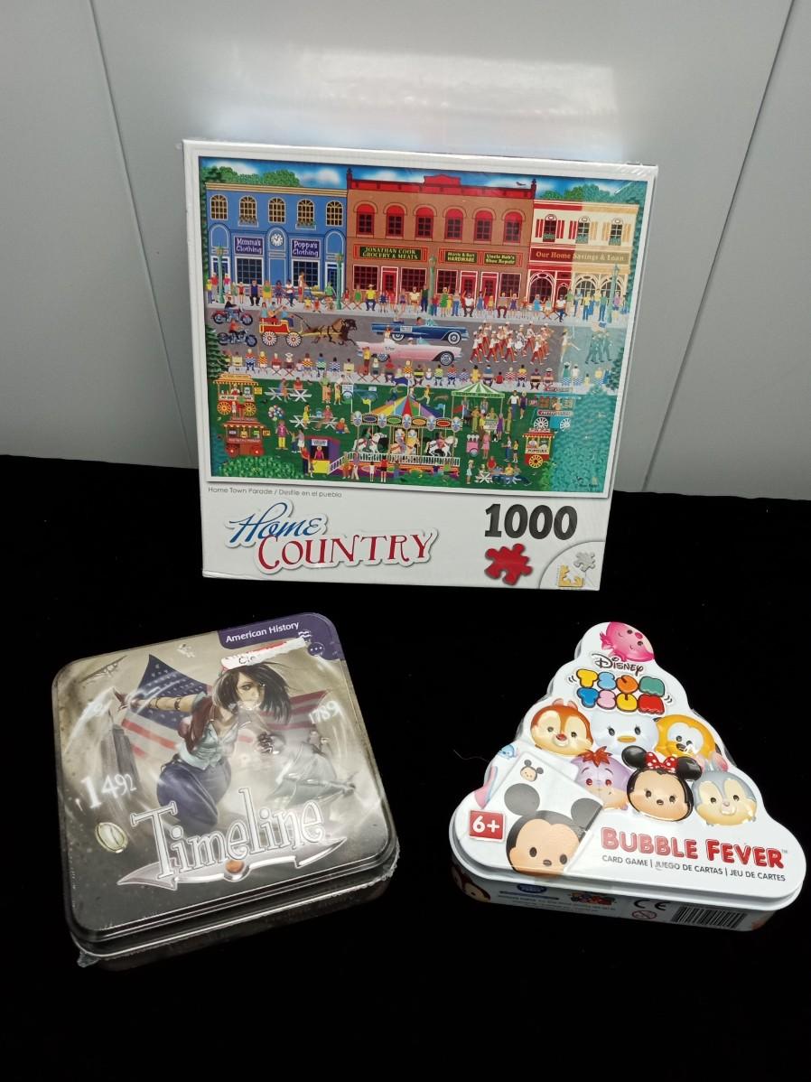 "TIMELINE" HISTORY GAME, DISNEY'S BUBBLE FEVER GAME AND A NEW, SEALED JIGSAW PUZZLE
