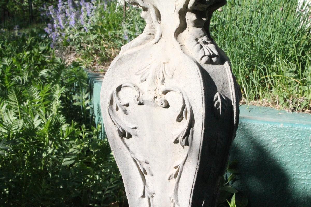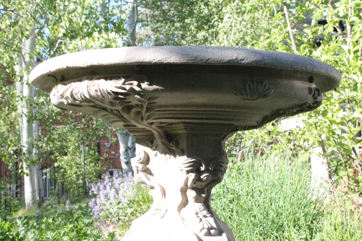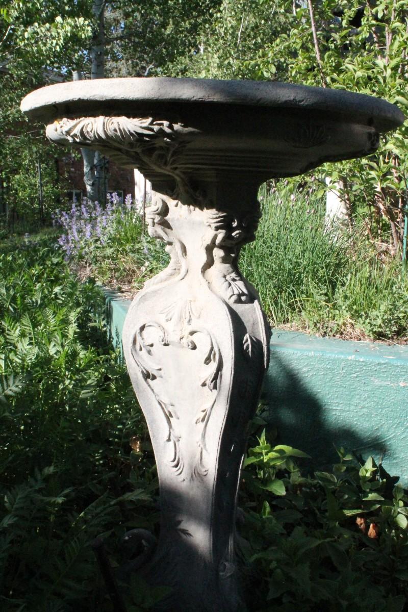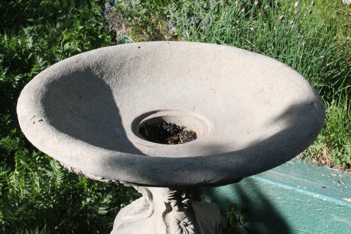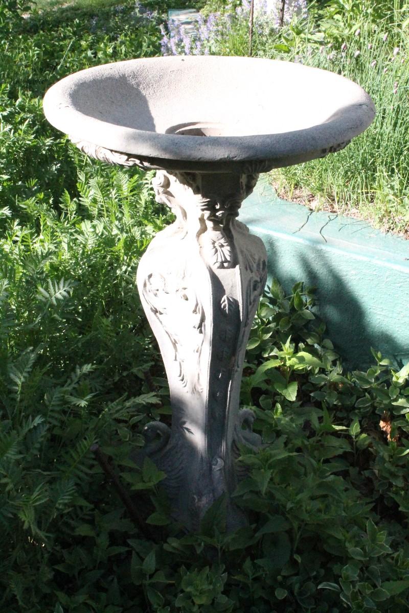 This ornate garden bird bath is in nice shape for age and shows a variety of decorative accents.