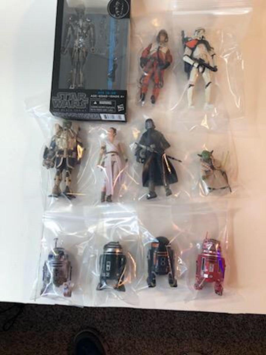 Lot 22 Star Wars action figures, 12 loose 6” action figures. Only used as display pieces.
