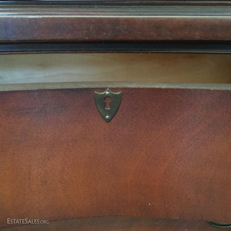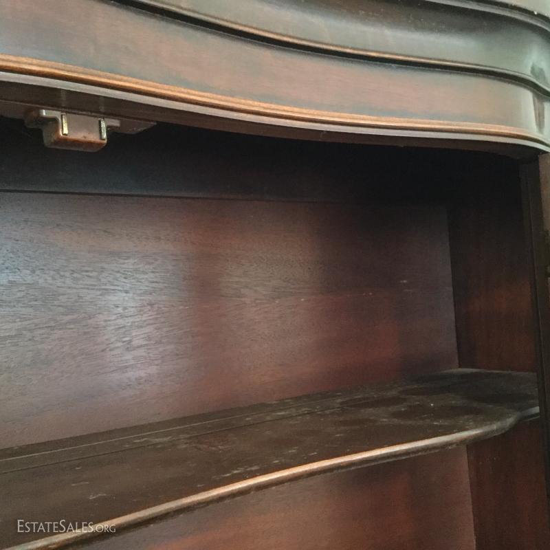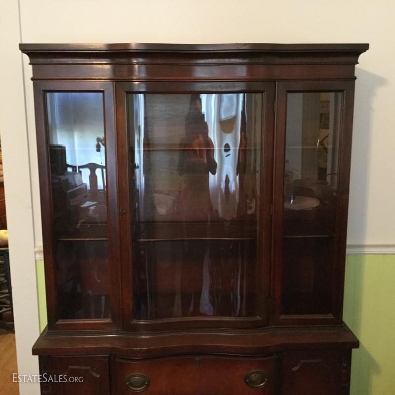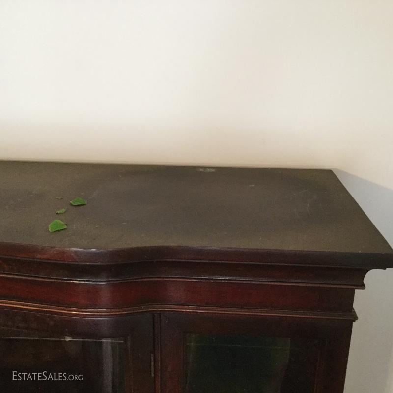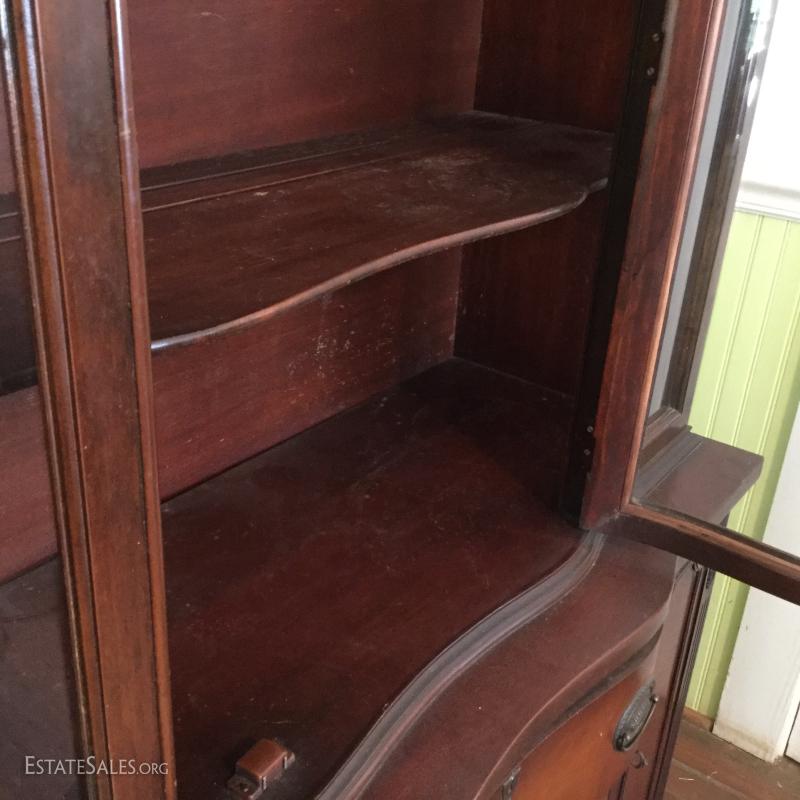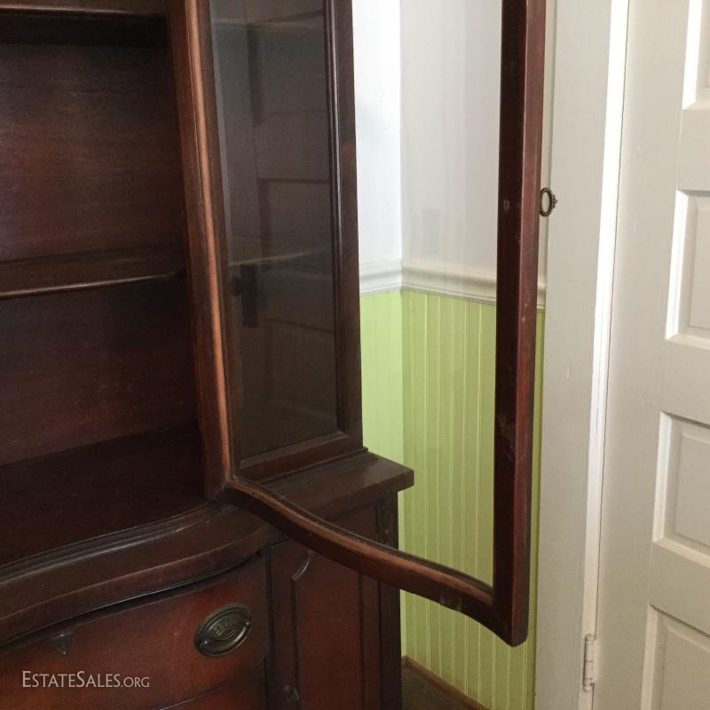 Antique Magogany China Cabinet with wavey glass front and brass hardware. Some small marks on wood but good condition overall.