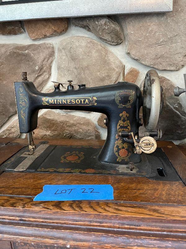 Lot 22 - Antique Minnesota Sewing Machine Ensemble