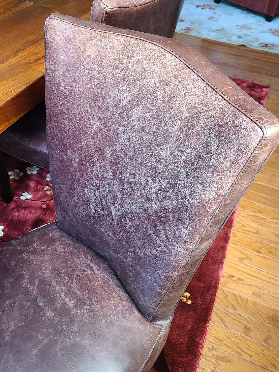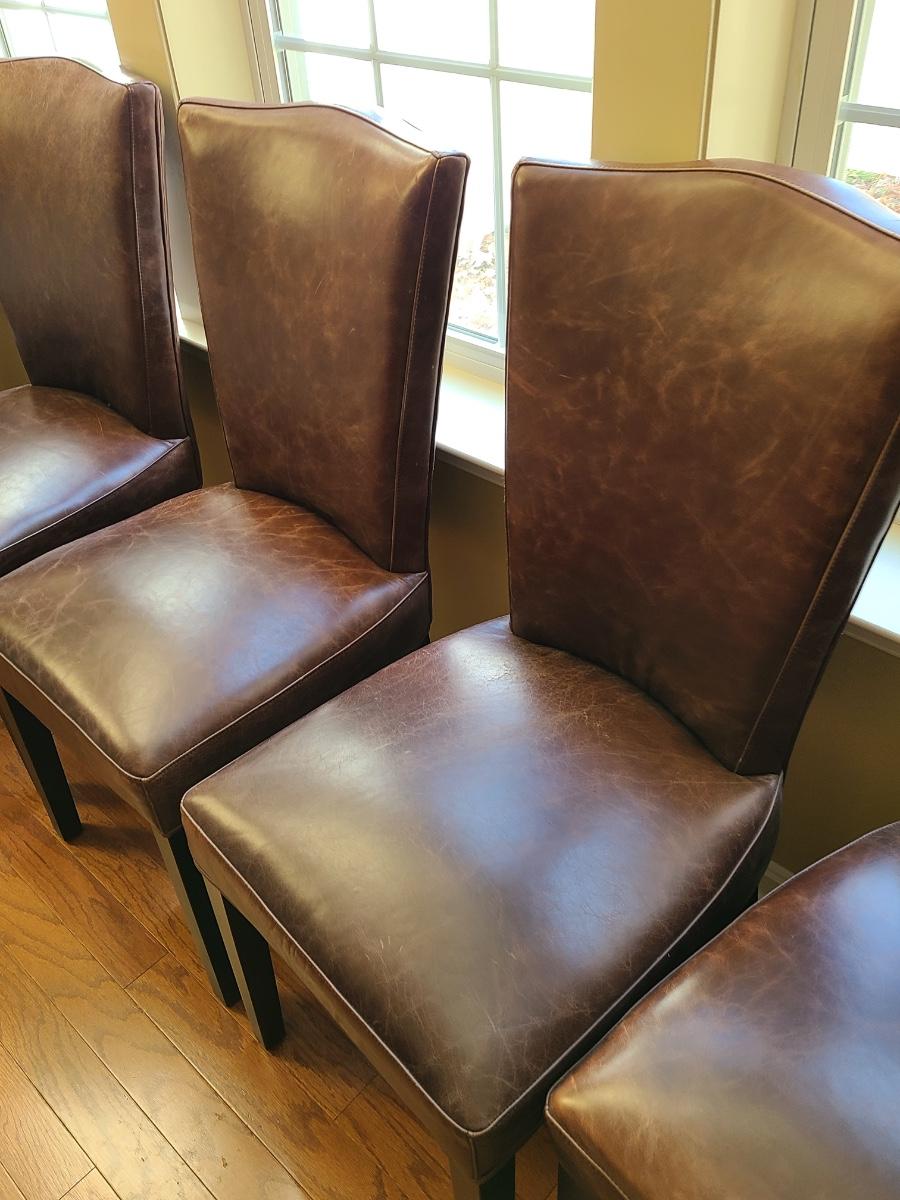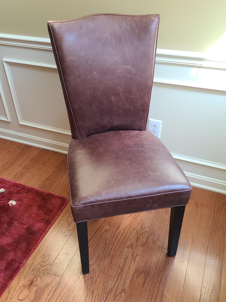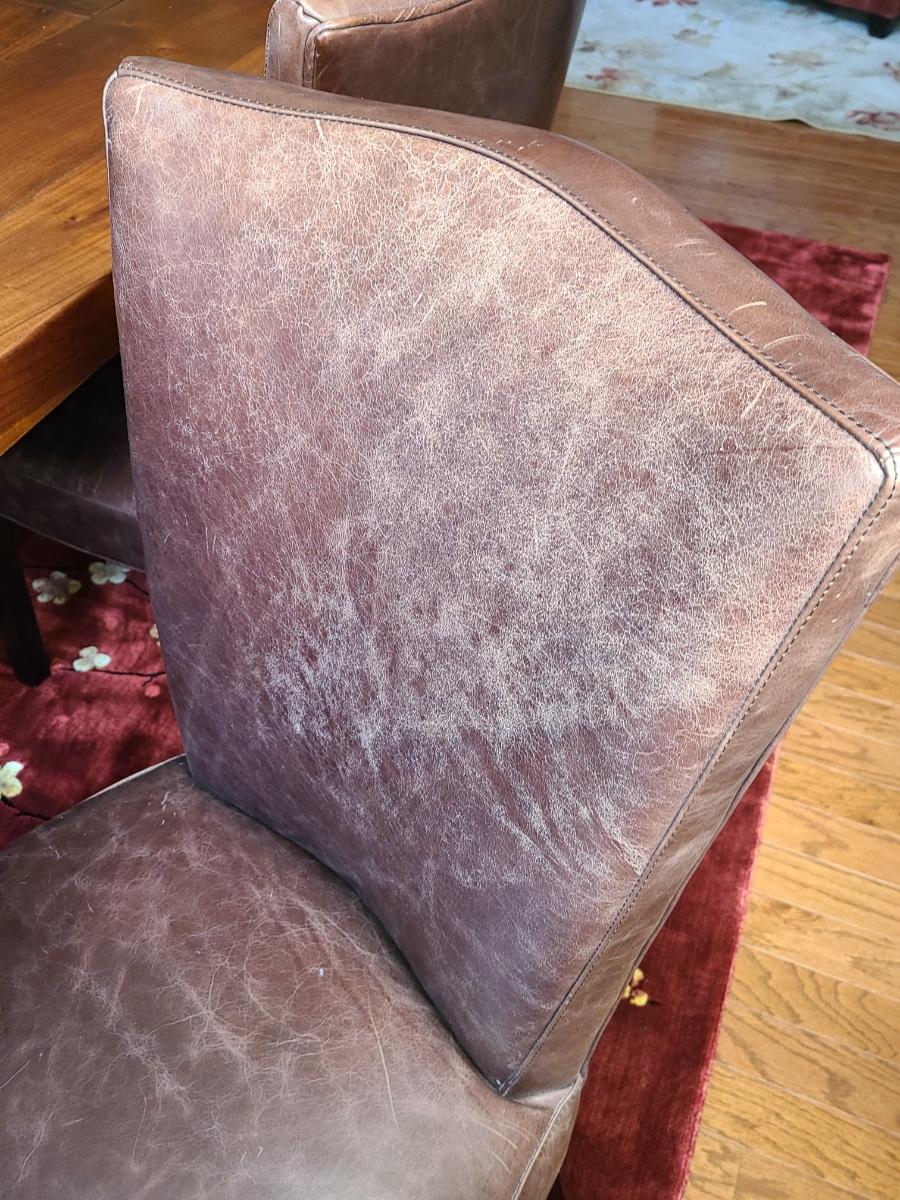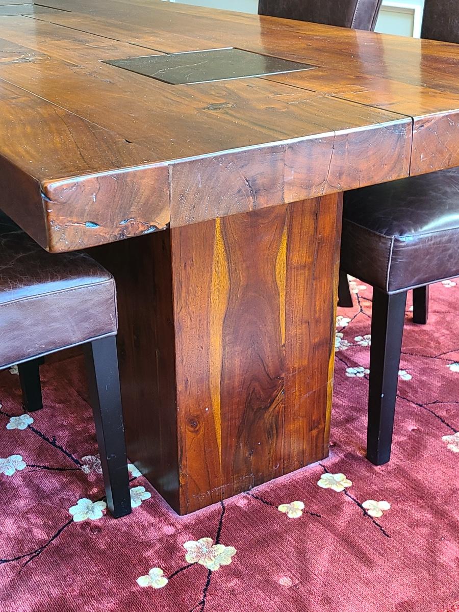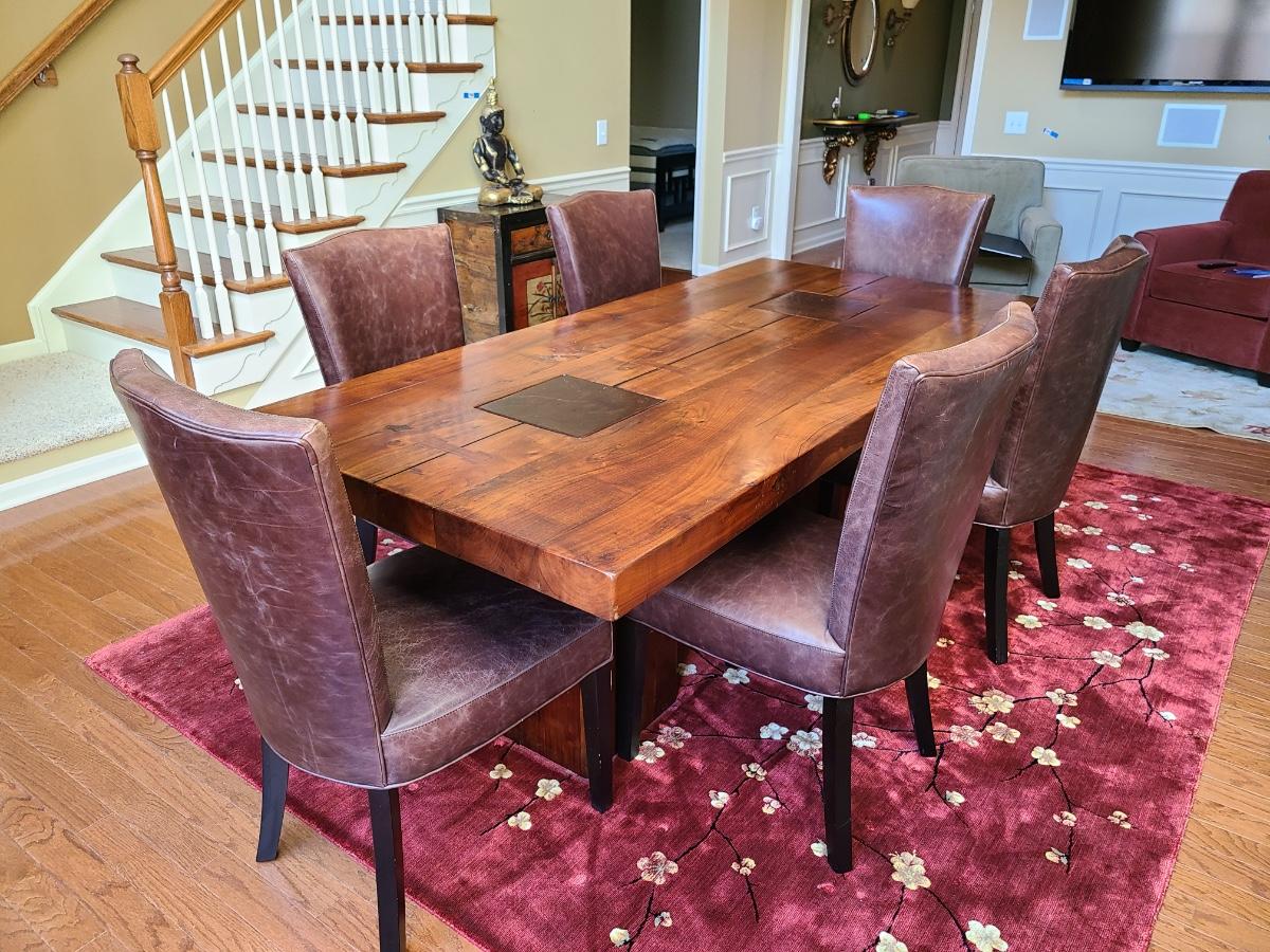 *now at its bottom line price! 30% off the already low price!* BUY NOW! Arhaus is known for exquisite design and custom craftsmanship. This is designer furniture that will last a lifetime. Stuning in design and function. 82x39x30 inches tall. 3 inch slab top. Comes apart in 3 pieces. Must bring help to move. Chairs are designed to have character scratches and markings. Can be leather reconditioned every so often if the owner chooses.