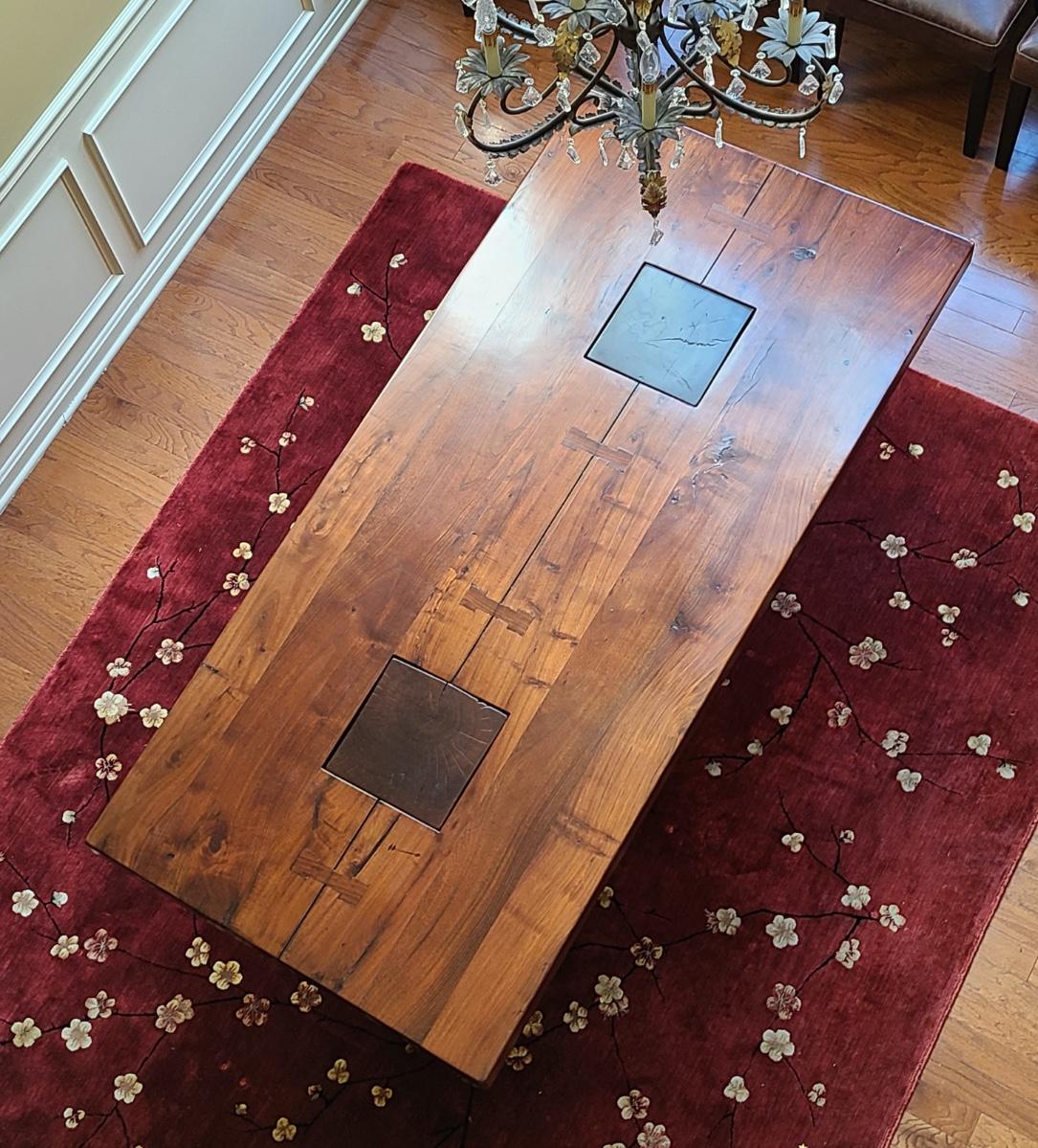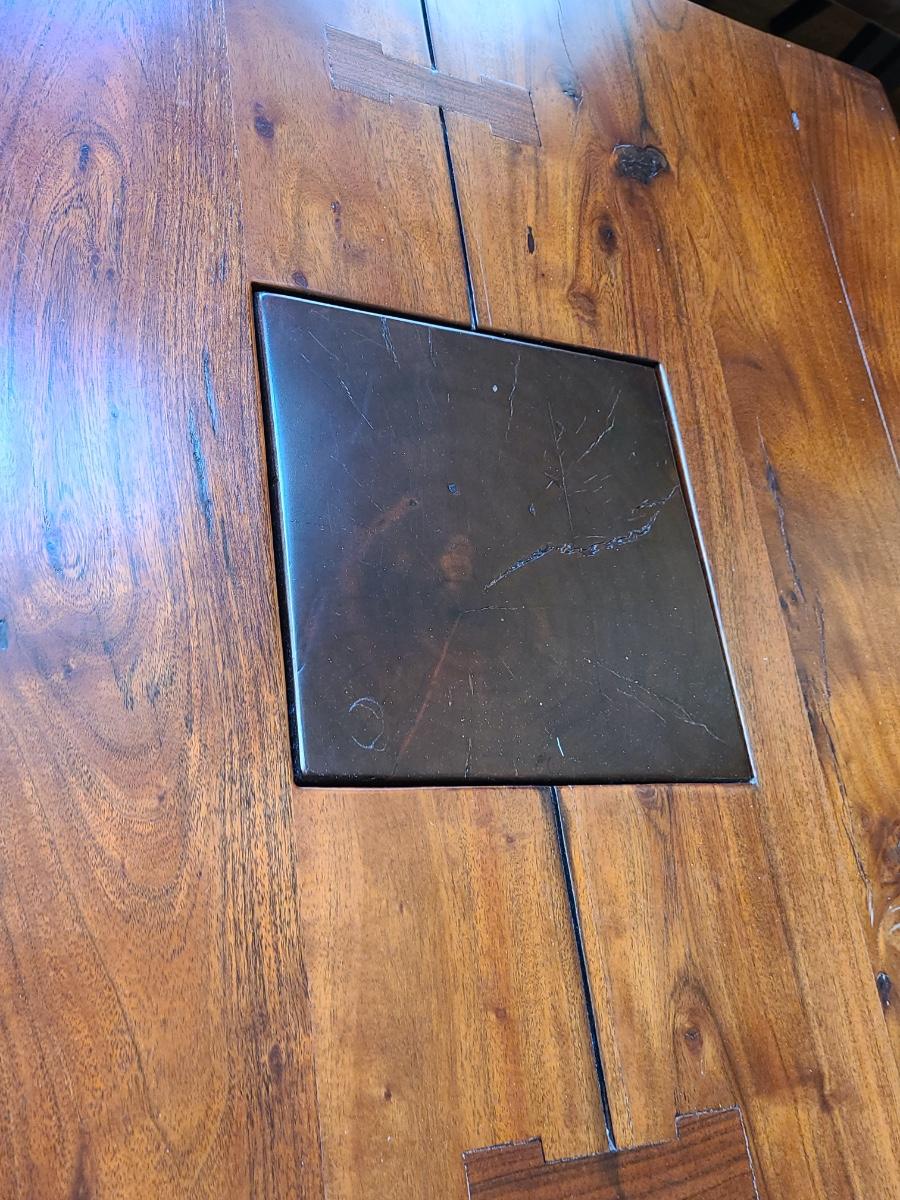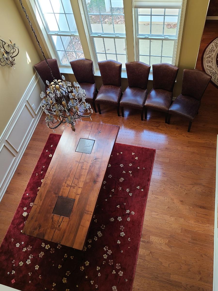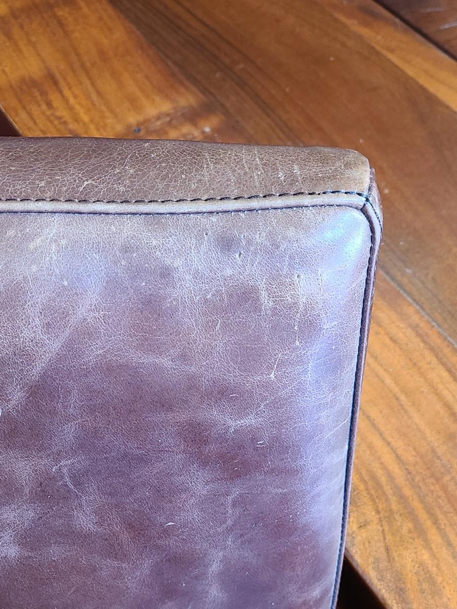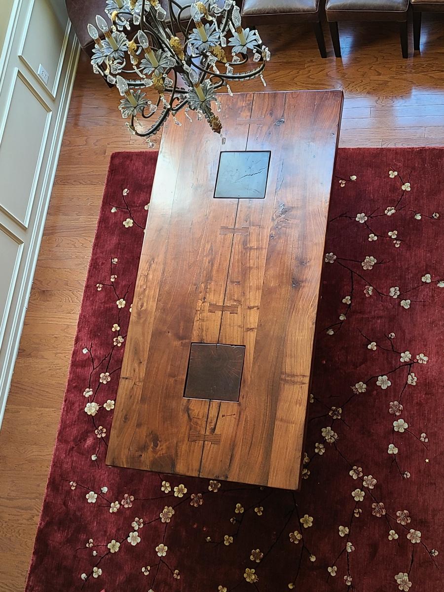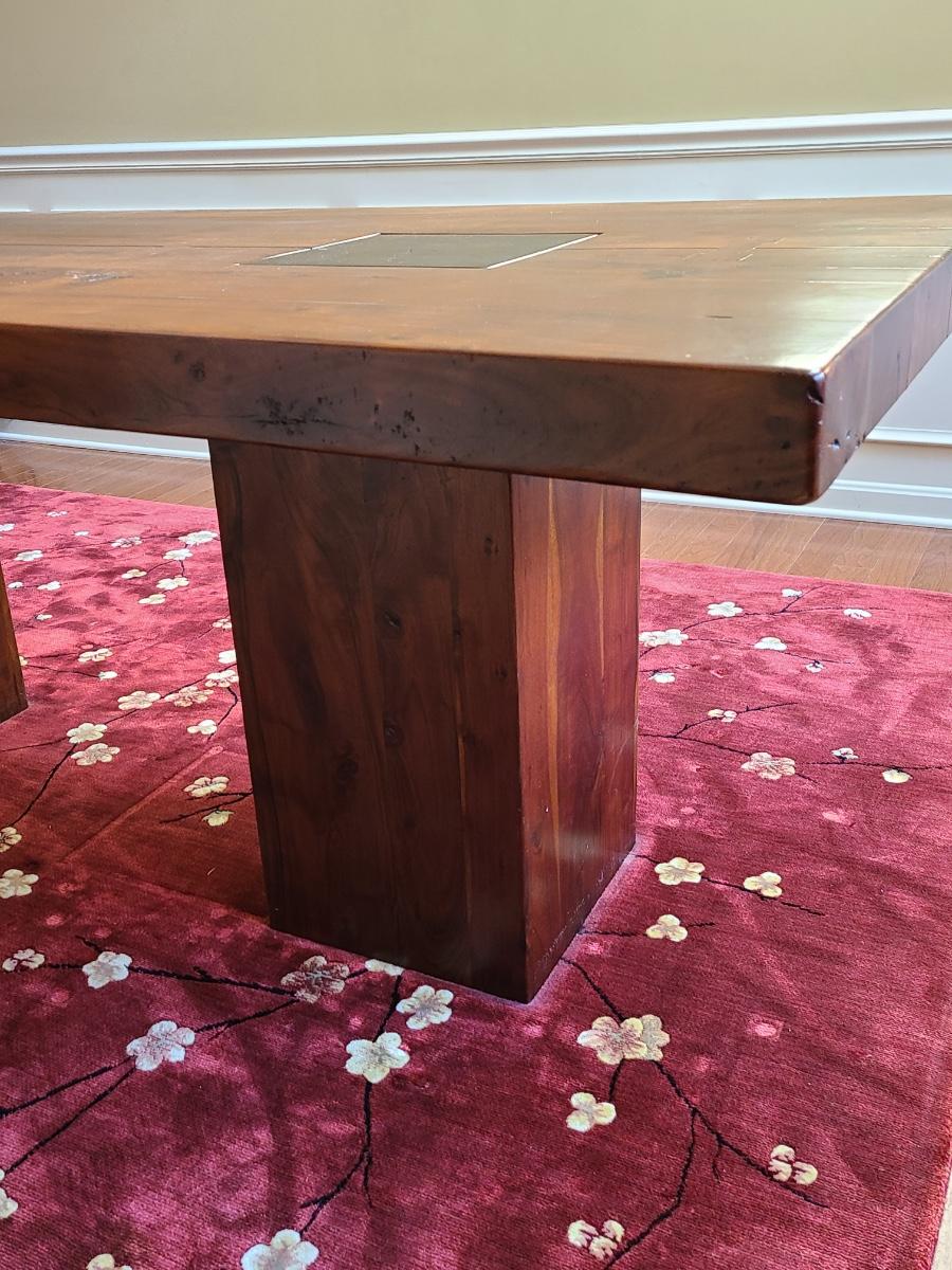 *now at its bottom line price! 30% off the already low price!* BUY NOW! Arhaus is known for exquisite design and custom craftsmanship. This is designer furniture that will last a lifetime. Stuning in design and function. 82x39x30 inches tall. 3 inch slab top. Comes apart in 3 pieces. Must bring help to move. Chairs are designed to have character scratches and markings. Can be leather reconditioned every so often if the owner chooses.