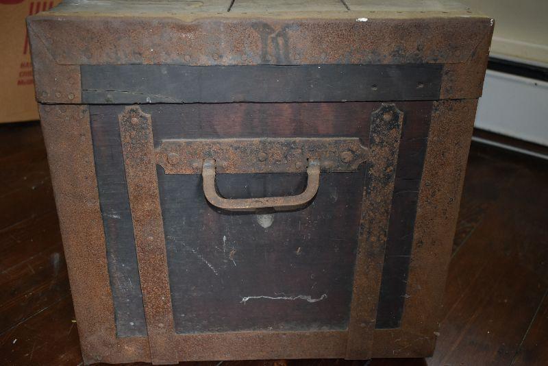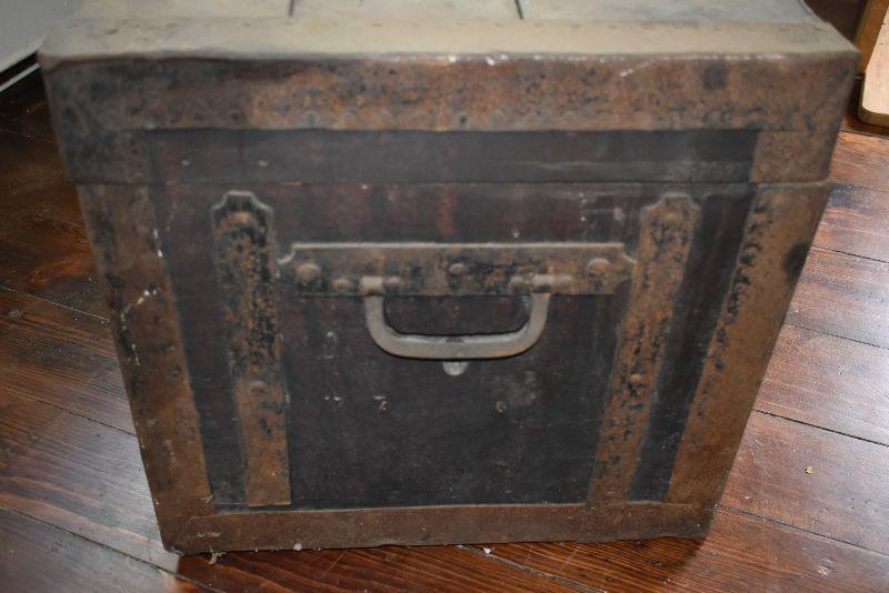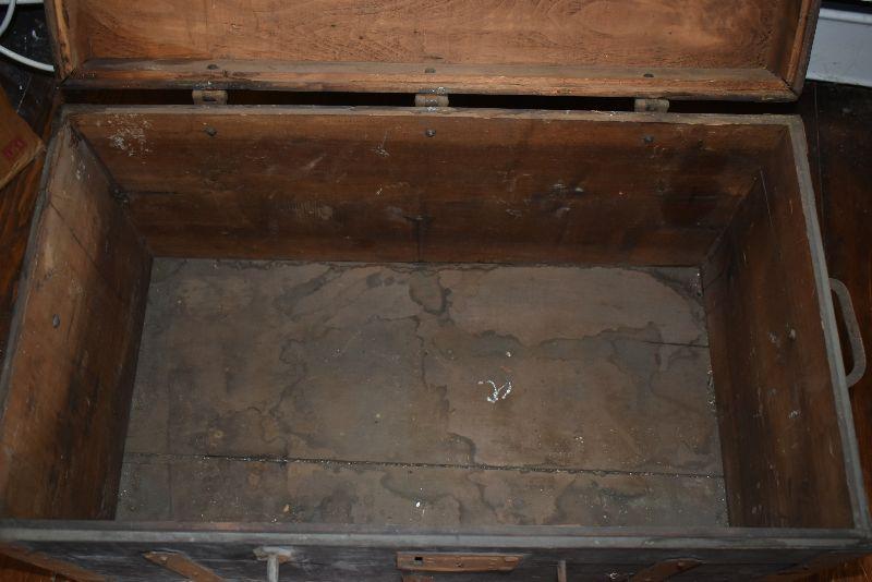 Vintage wooden army chest with metal structure, rust noted. Comes with owners name patch and dog tag. 22X15X15.5. Bring help to move from second floor.