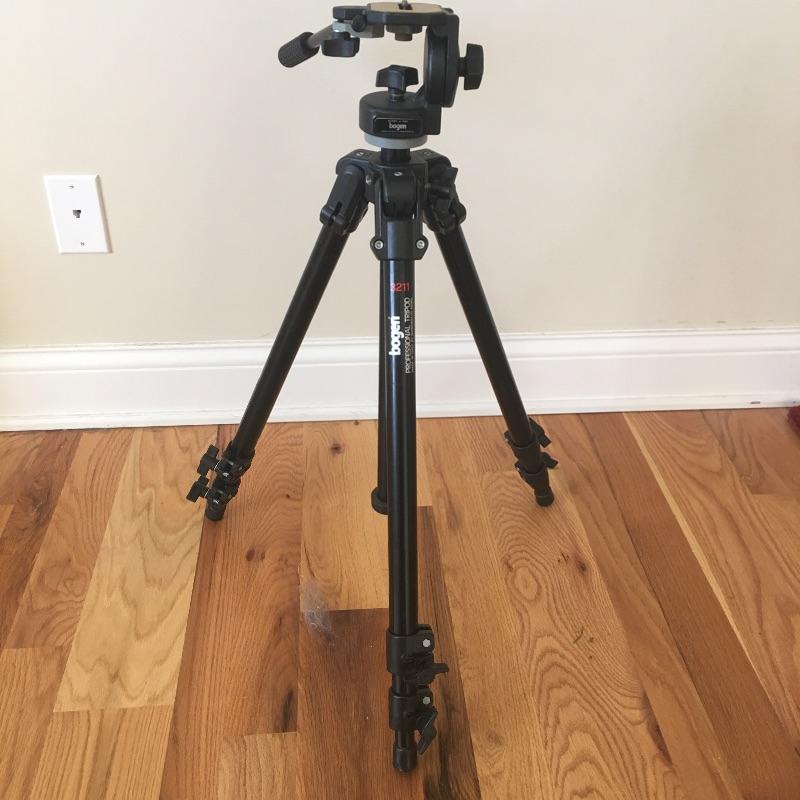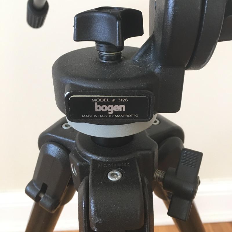 Bogen by Manfrotto tripod # 3211 with Bogen # 3126 head. Tripod measures 72” tall when fully extended. When you need a great tripod, Bogen is the one you look for.