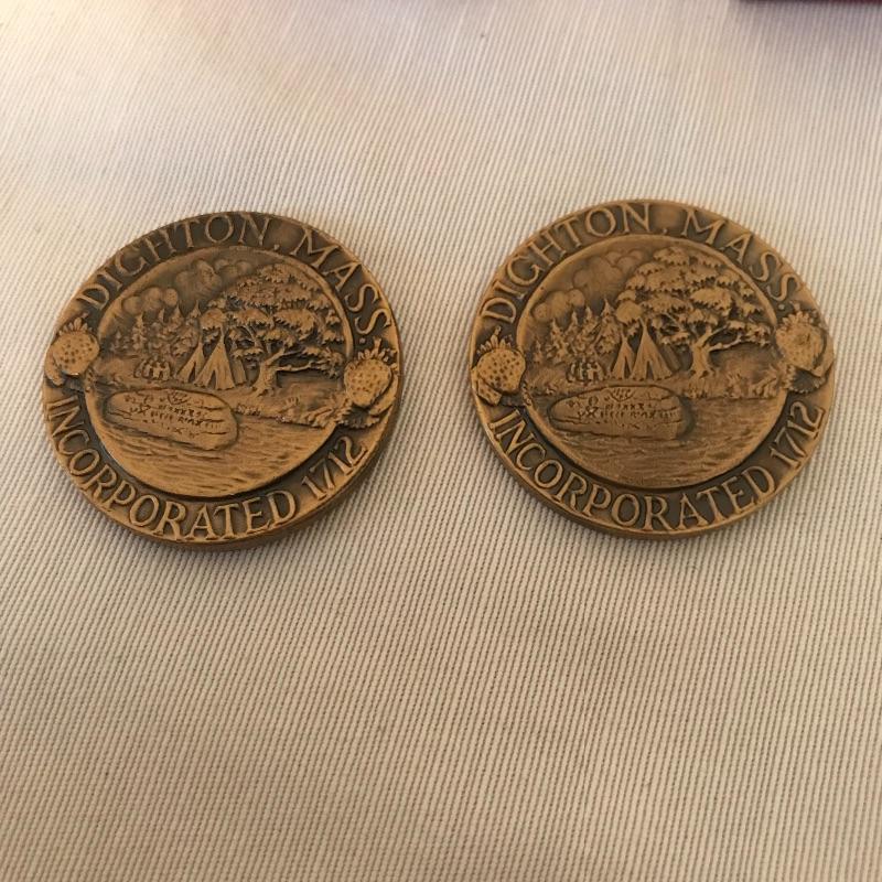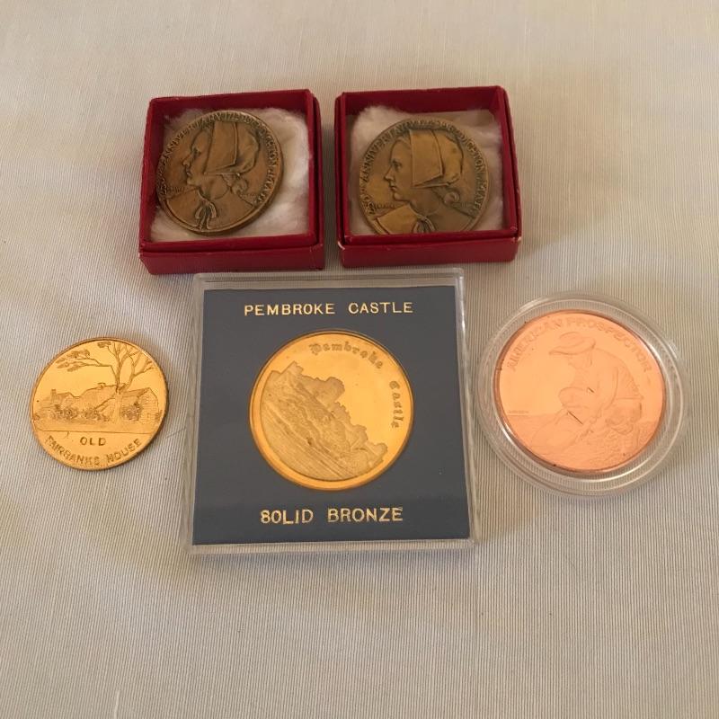 Pembroke Castle solid bronze, .999 fine copper American Prospector, Old Fairbanks House 1636-1936 Incorporated and two Dighton Mass 250th Anniversary. See photos.