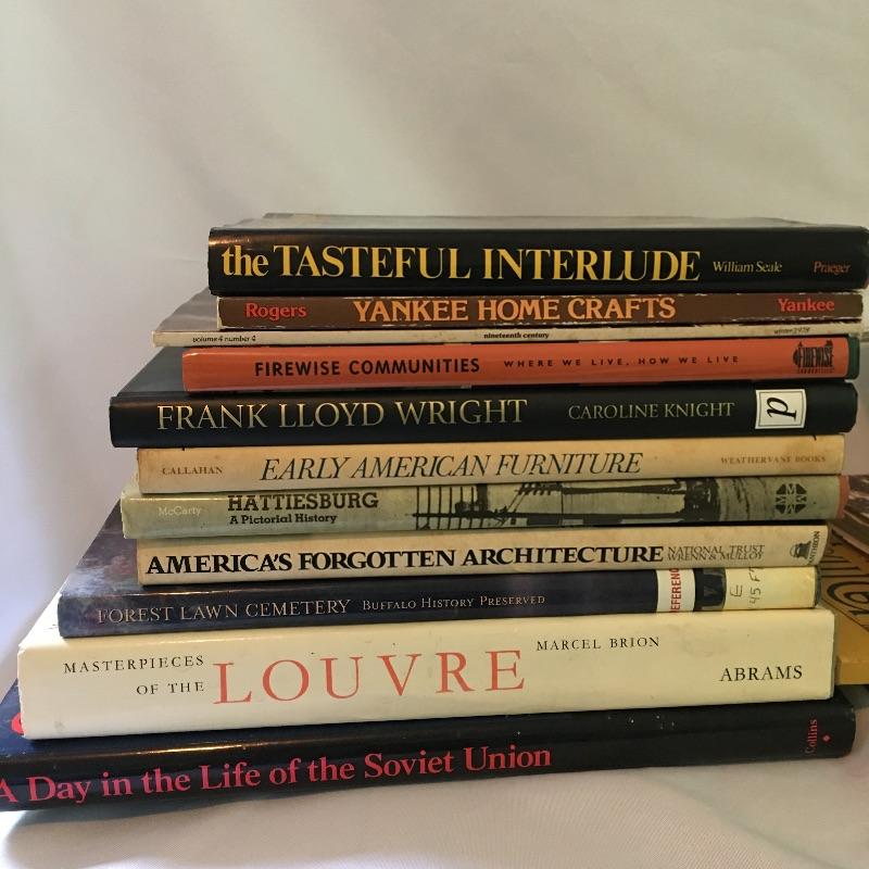 Coffee table books. Lot includes books about Frank Lloyd Wright, The Louvre, Soviet Union and More. A great way to see some of the most amazing man made objects without leaving your home.
