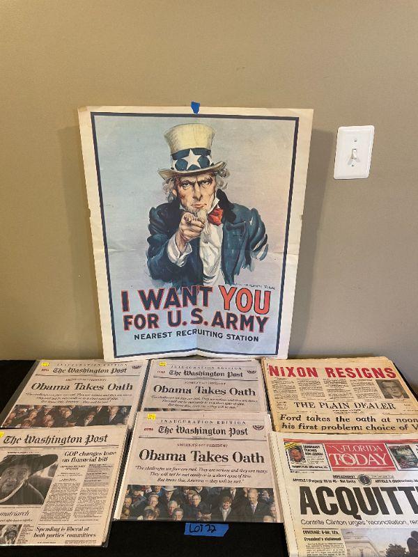 Lot 22 - Collection of Old Newspapers (Obama, Nixon, etc)