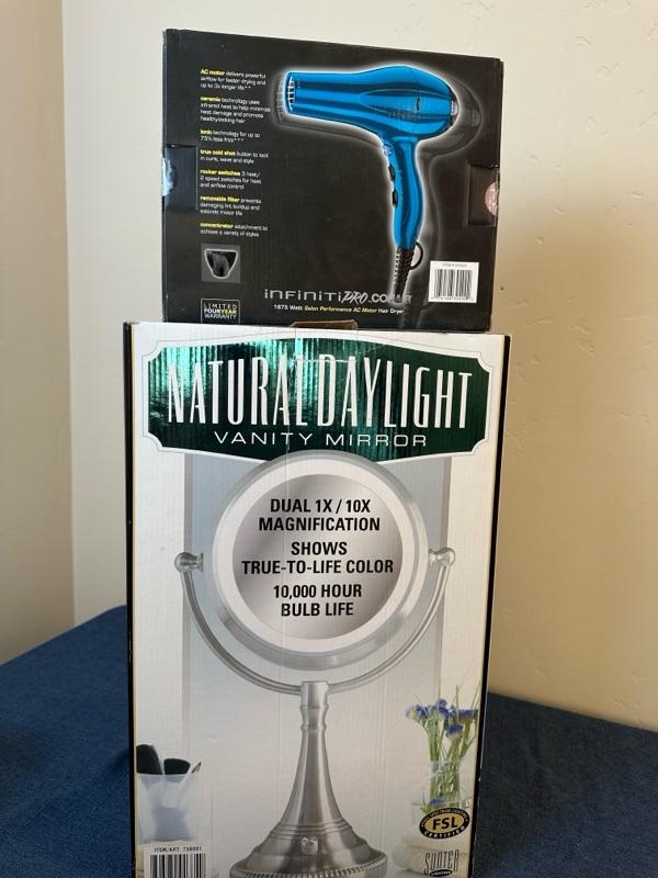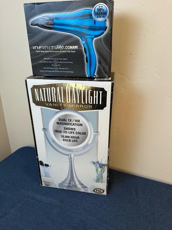 Lot 22, Conair, hair dryer, and light up vanity mirror