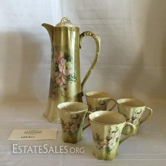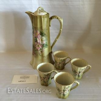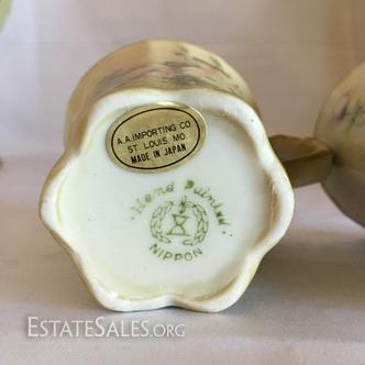 Lot includes Royal Albert Bone China Tea Cups, Nippon Hand Painted "Chocolate" ( Kettle is 11 1/2" tall ) , Thomas Kincade Plate, Plate By Andrea,