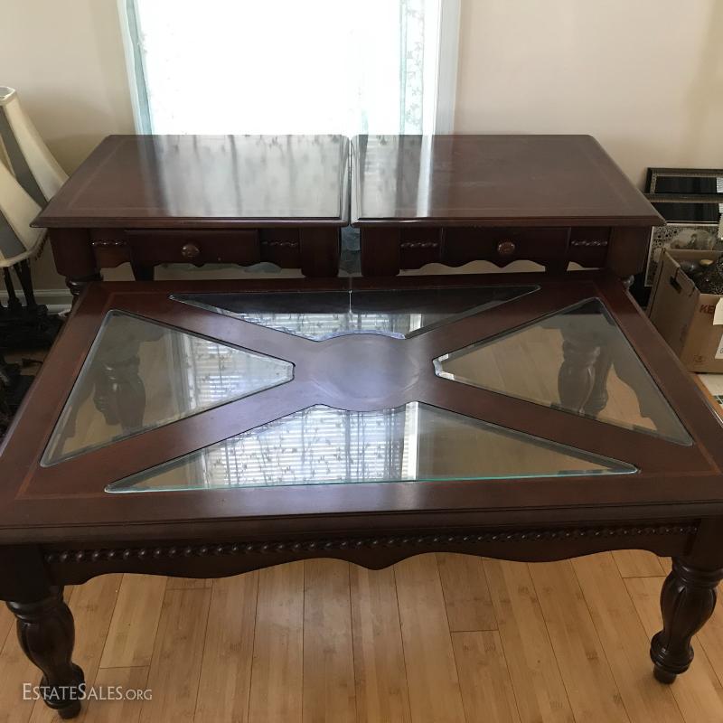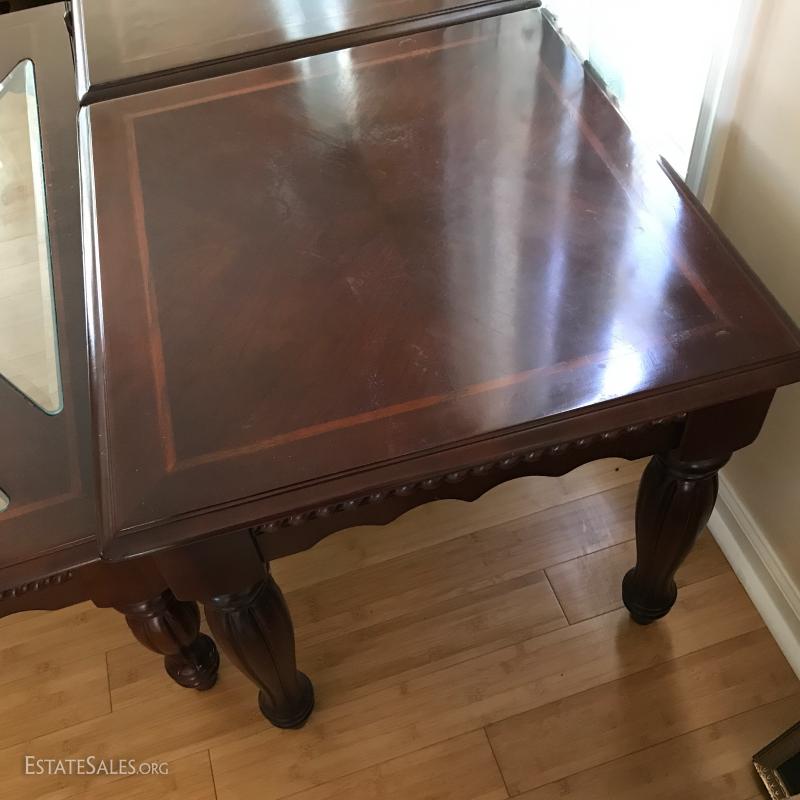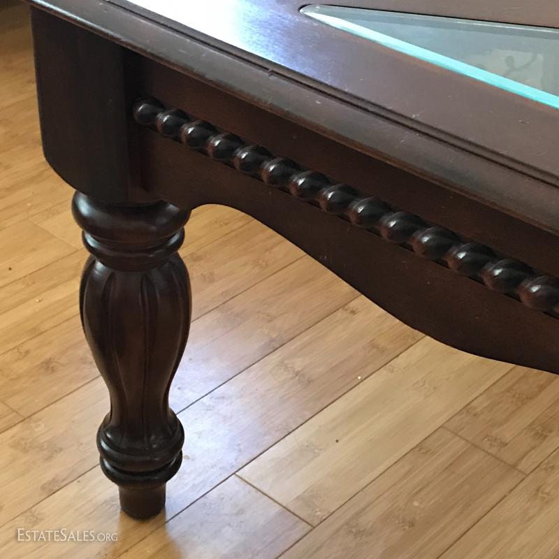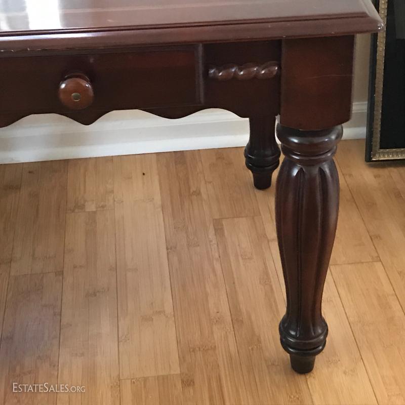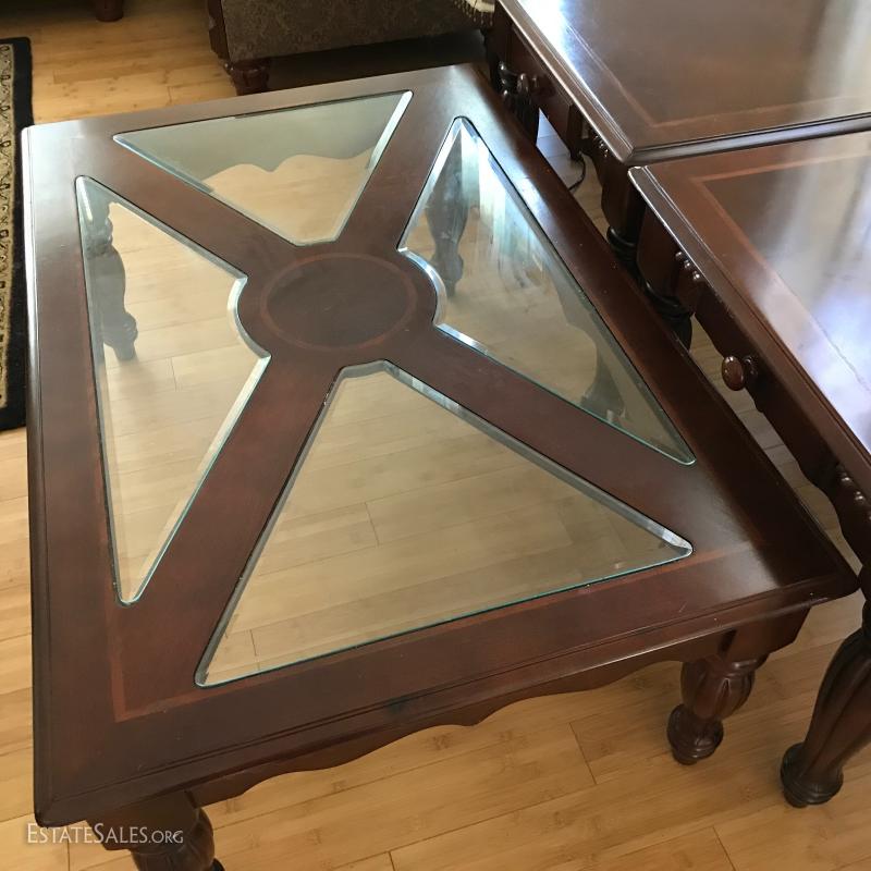 Two end tables and one coffee table, all made by Ashley furniture. End tables are 26"l x 26"w x 24"h. Coffee table is 48"l x 31.5"w x 19"h. Small scratches and scuffs but otherwise in great condition.