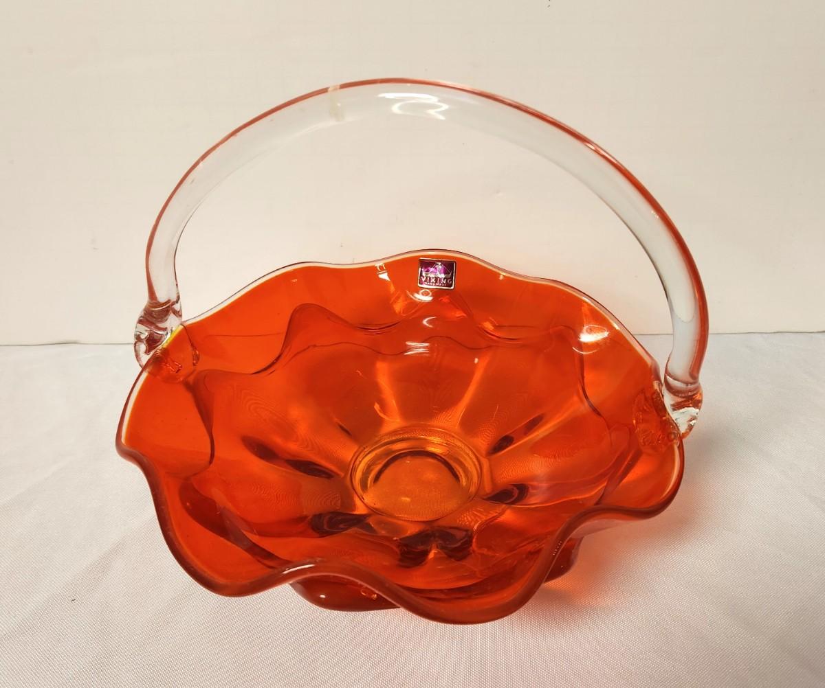 Lot #22 Fantastic Mid Century Modern VIKING glass basket - original label!