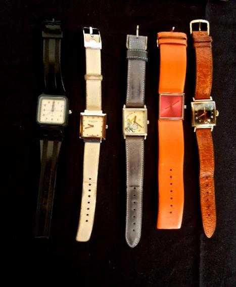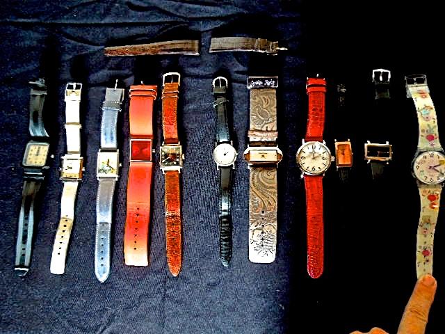 Eleven different fashion watches from various designers. Includes Seiko, Bulova, Kenneth Cole, Cynthia Rowley, Skagen and Swatch. Extra embossed leather strap included. None of the watches have been tested. Please attend preview on Sun. Oct. 21st to verify.