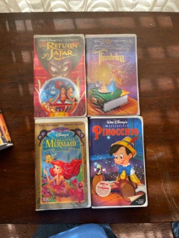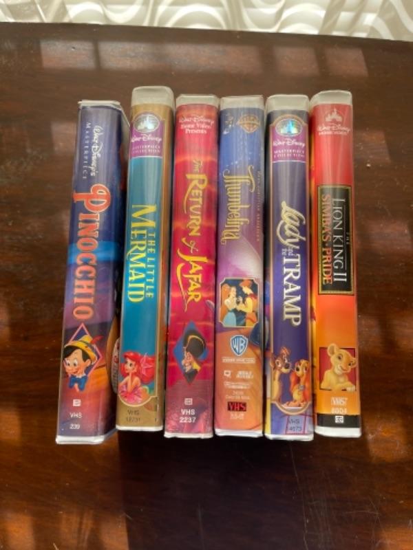 Lot 22. Lot of six Disney VHS tapes“”Pinocchio, The Return of Jafar, Little Mermaid, Thumbalina, Lady and The Tramp;, Lion King II Simba’s Pride--$50