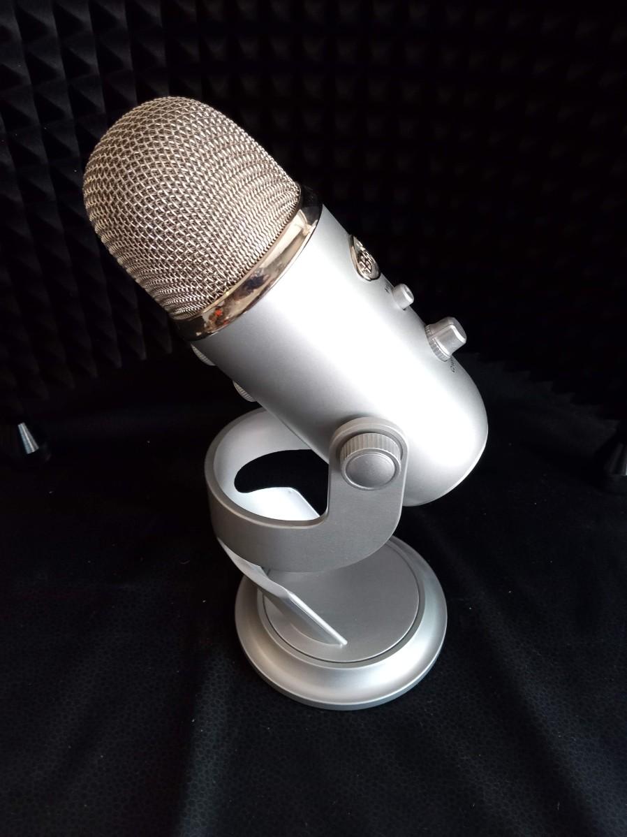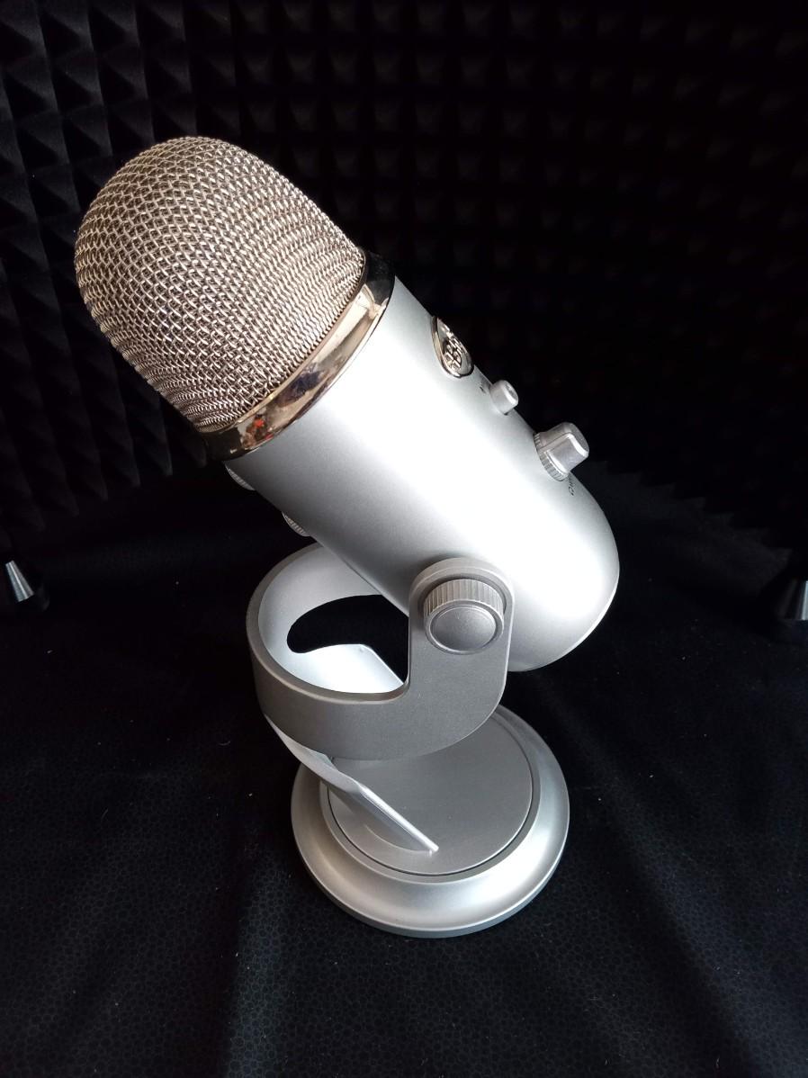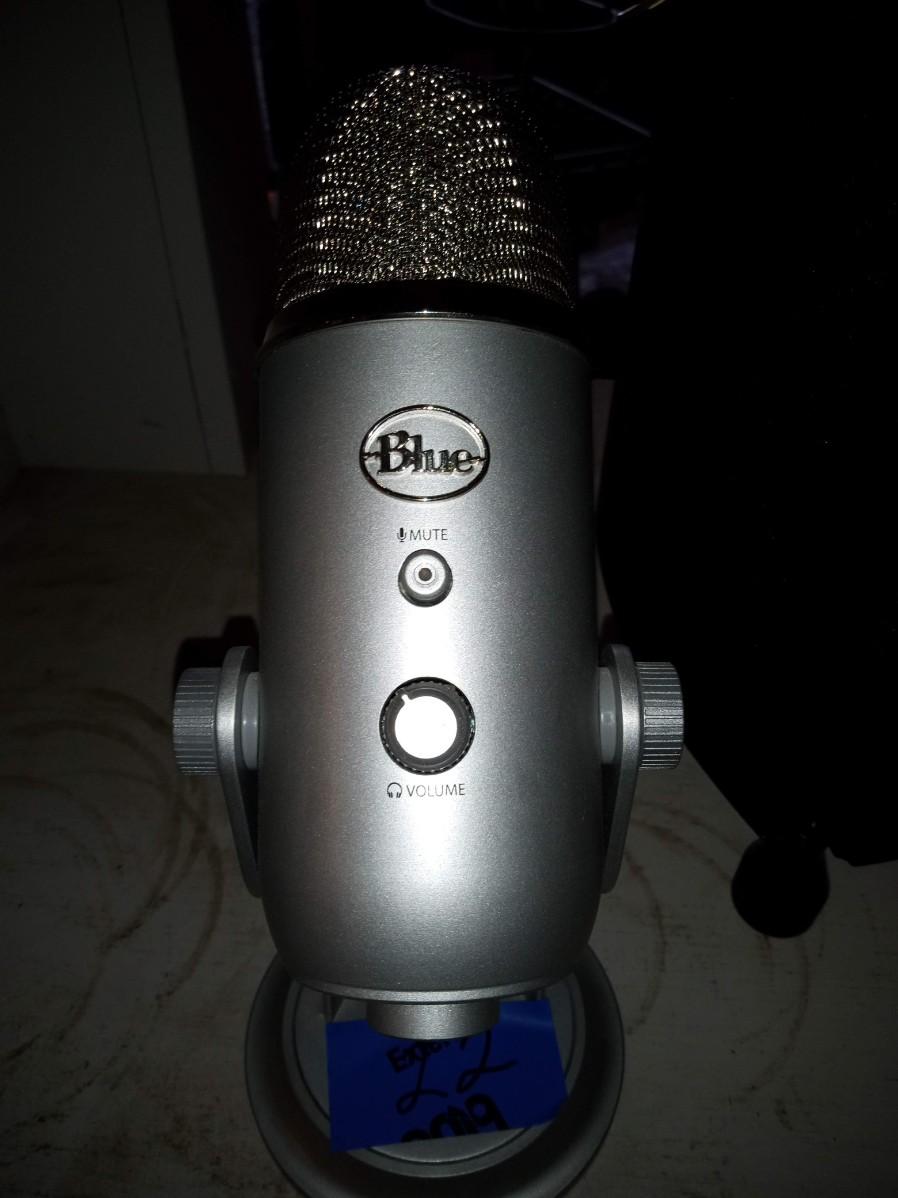 BLUE MICROPHONE ON AN ADJUSTABLE STAND (WE ARE STILL LOOKING FOR ITS CORD)