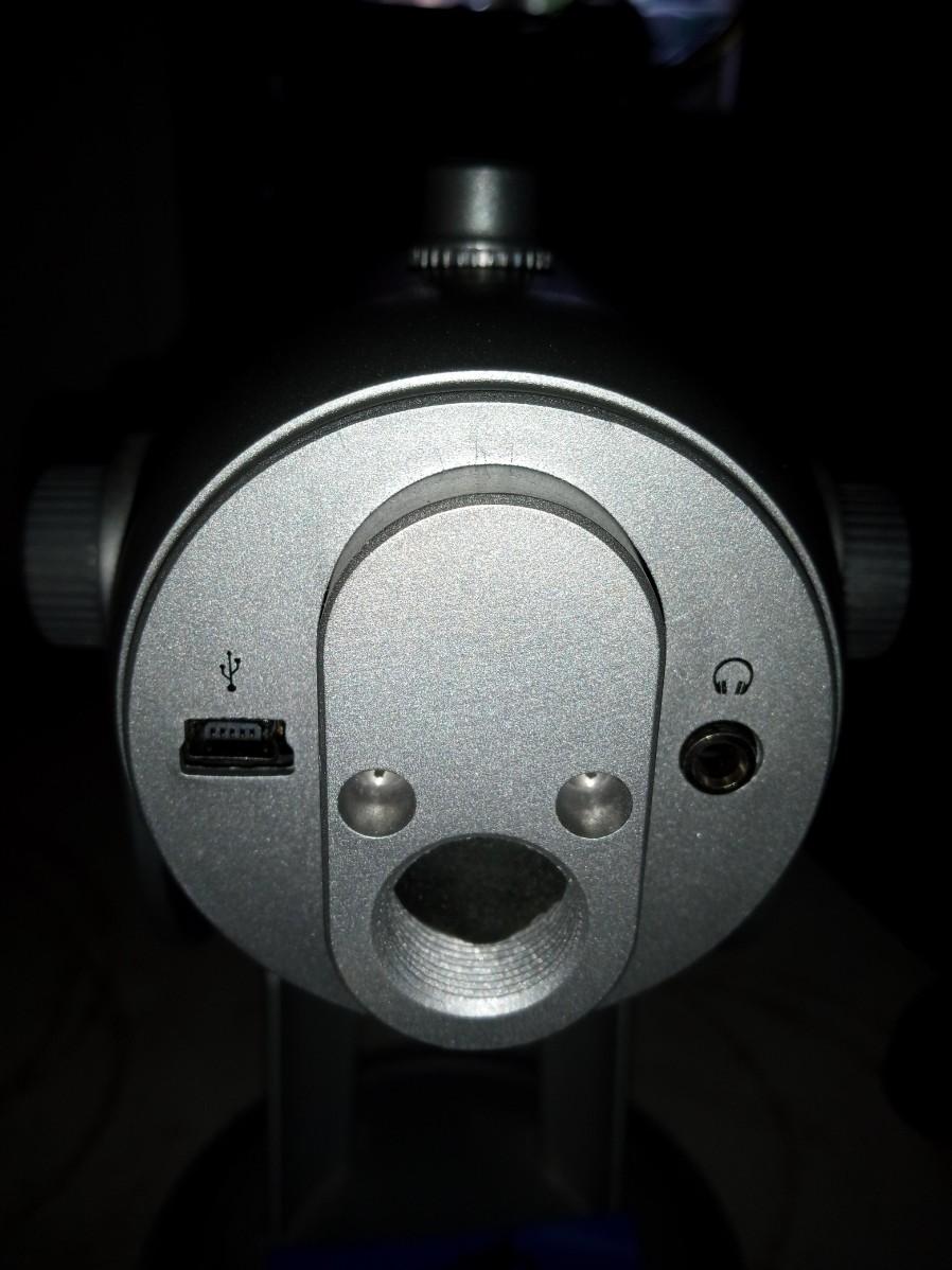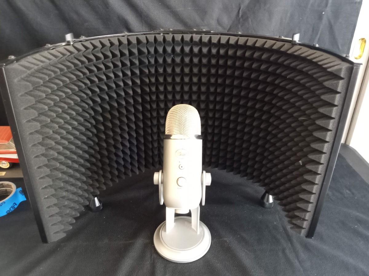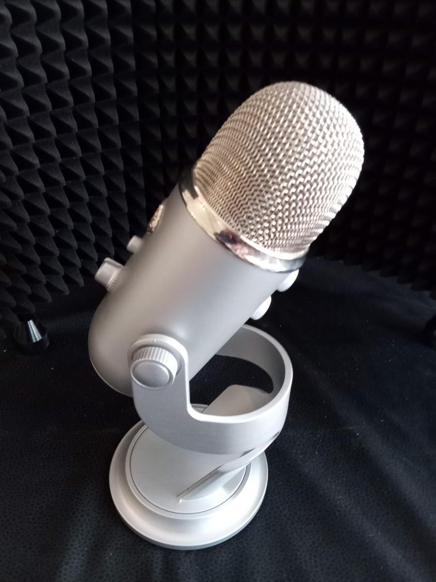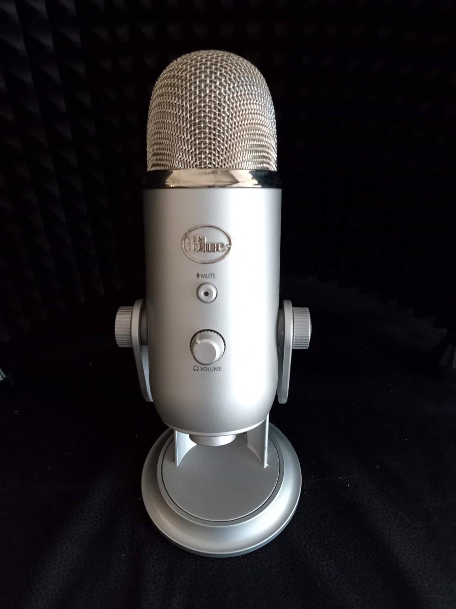BLUE MICROPHONE ON AN ADJUSTABLE STAND (WE ARE STILL LOOKING FOR ITS CORD)