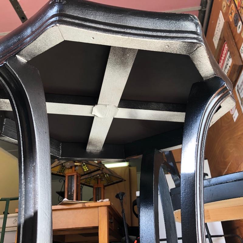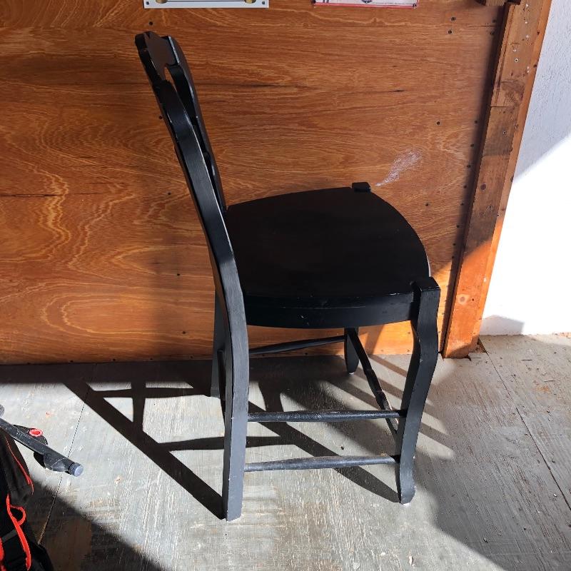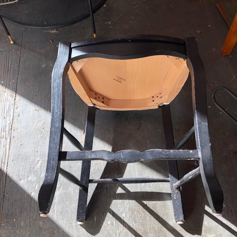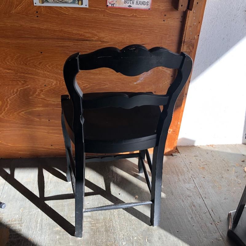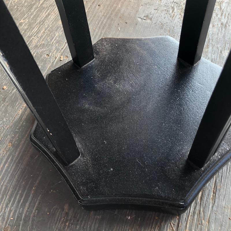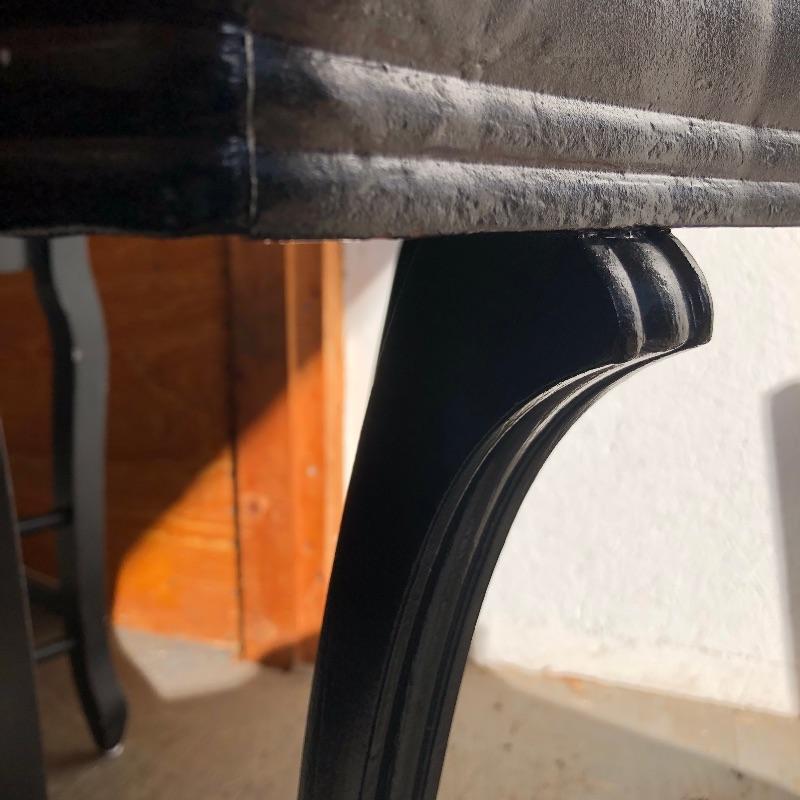 This nice black wood duo includes a heavy wood chair and a mirrored table. Both pieces are wood painted black. The top of the table is a lovely rose hued tinted mirror that will show off a few precious display ornaments very nicely. The mirror is in good shape with just a few very minor blemishes shown in an image.