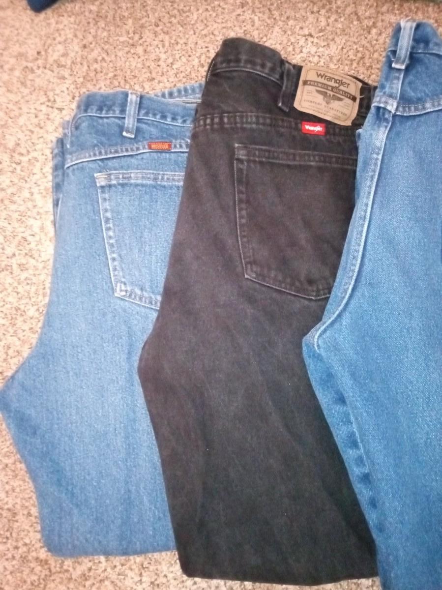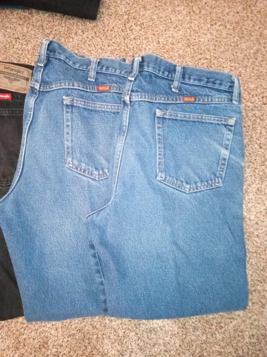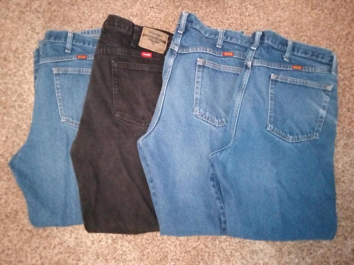 FOUR PAIRS OF WRANGLER RUSTLER JEANS SIZES 38×30