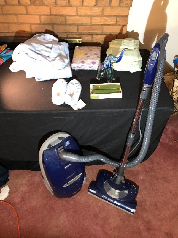 Lot 22 - Ladies Robe, Green Wallet, Glass Elephant, Twin Sheets & Kenmore Vacuum