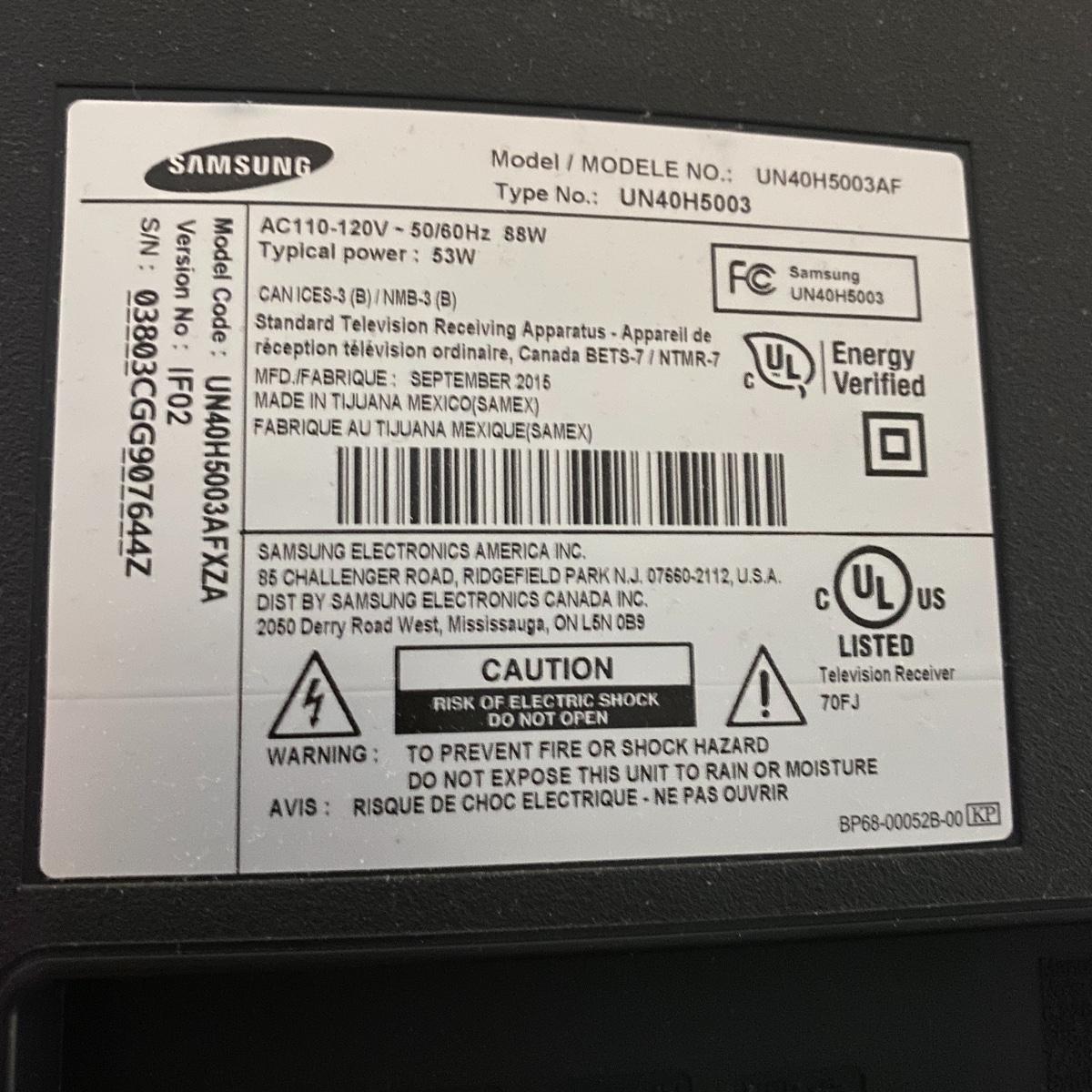 T.V. Time! Lot 22 is dedicated to this 40” Samsung flat screen. It powered on when tested but please note there is a scratch at the top of the screen (see pic). Local pick up only.