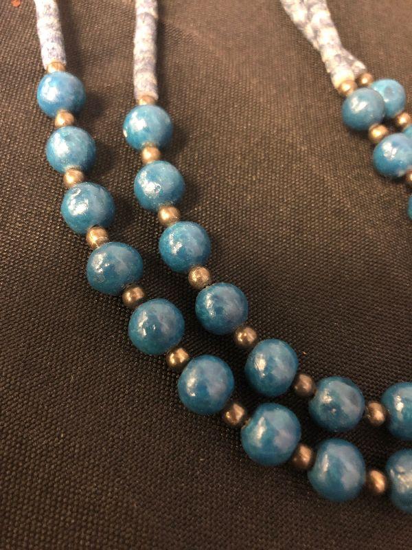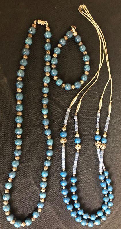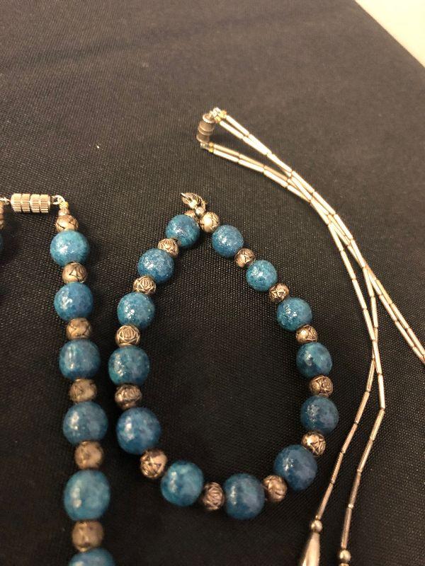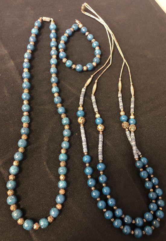 Lot #22 Silver and Blue ceramic beaded 2-Necklaces and bracelet
