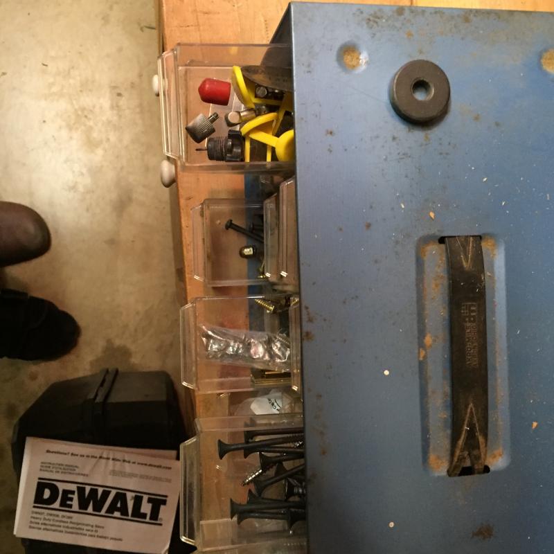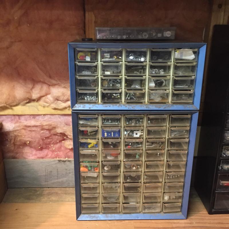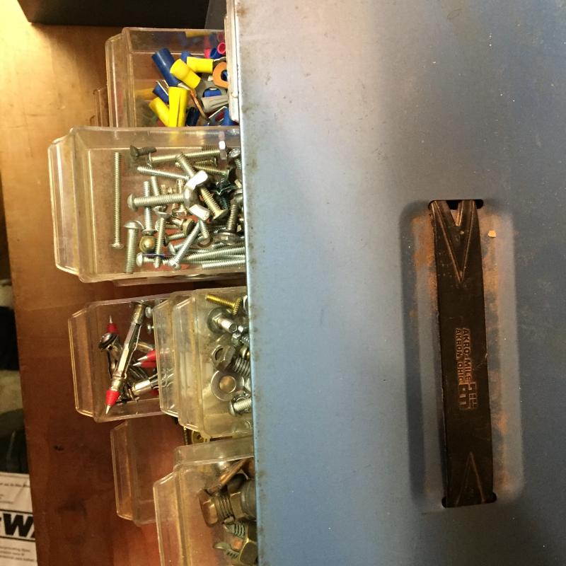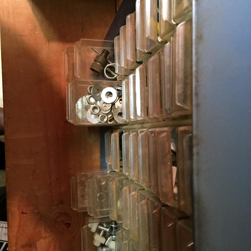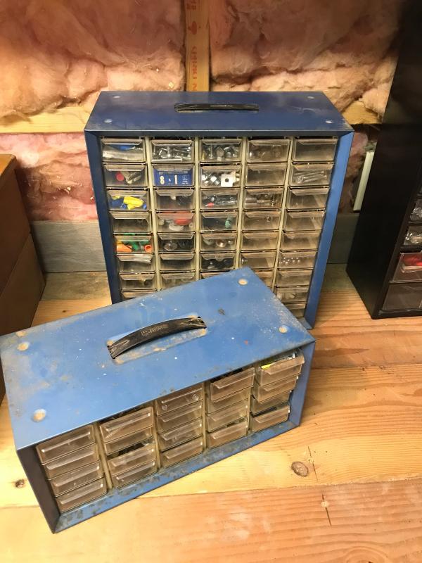 Two Metal Storage Boxes And Contents. Filled with nuts bolts and more. Large unit measures 12” x6.5” x13.5” and smaller one is 12” x6.5” x6.5”. Lot is available for local pick up in Horseshoe, NC only.