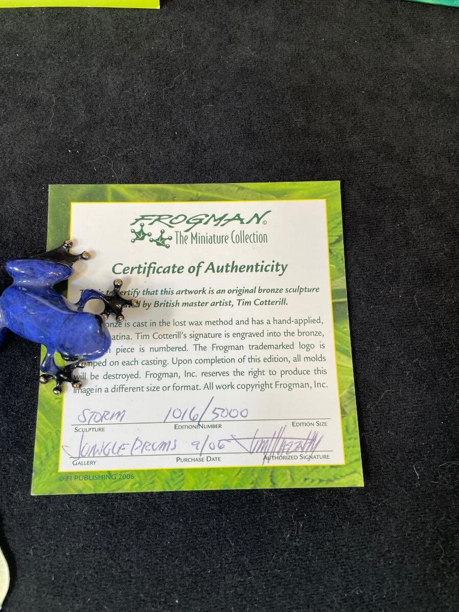 Lot 22. Tim Cotterill Bronze Frog Miniature Sculpture "Storm"