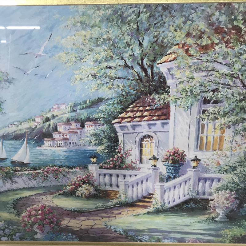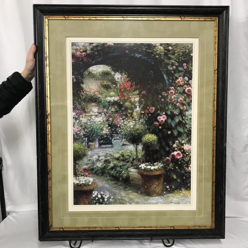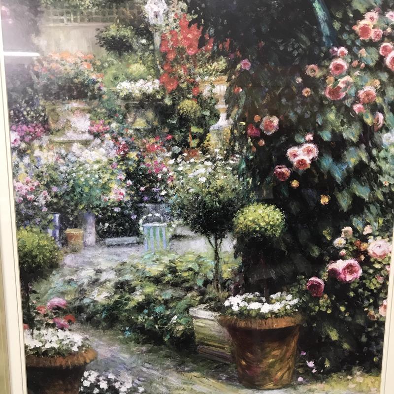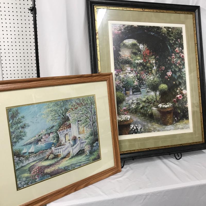 Makes you want to walk into the picture. Beautiful scenes full of flowers. No signatures. Large print 43” x 34” and smaller one is 31.5” x 25”. Local Pick up only in Maggie Valley, NC