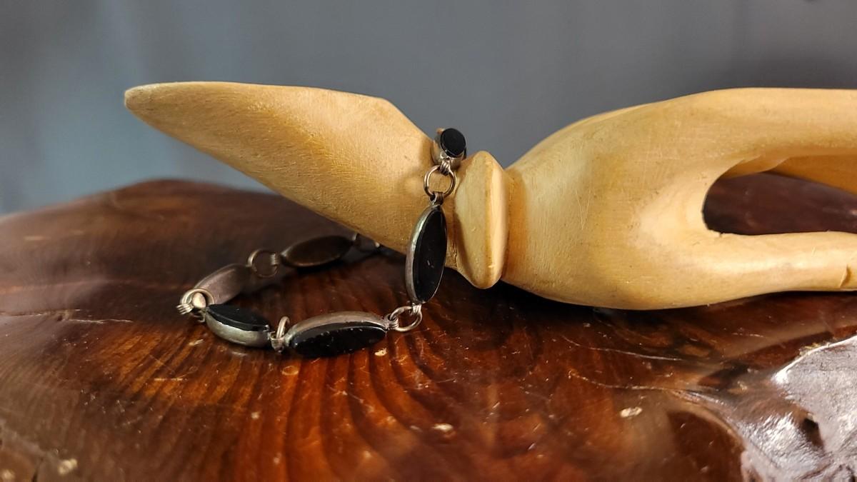 Lot 22: Vintage 7" Sterling Silver MEXICO STERLING Silver and Onyx Bracelet