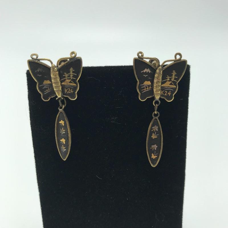 Add elegance with these clip-on beauties! Black and bronze in color with an Asian feel. The lower right wing of each butterfly is marked K24. See photos.